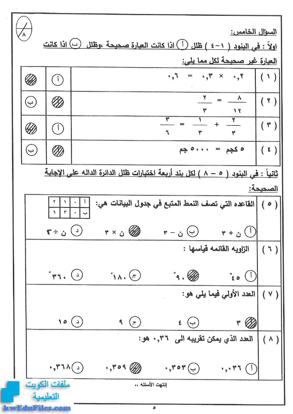 | السابق: نموذج إجابة لمنطقة الفروانية | الملف الحالي: 5041 | التالي: نموذج اختبار تحصيلي حول الكسور العشرية والتحليل المنطقي |