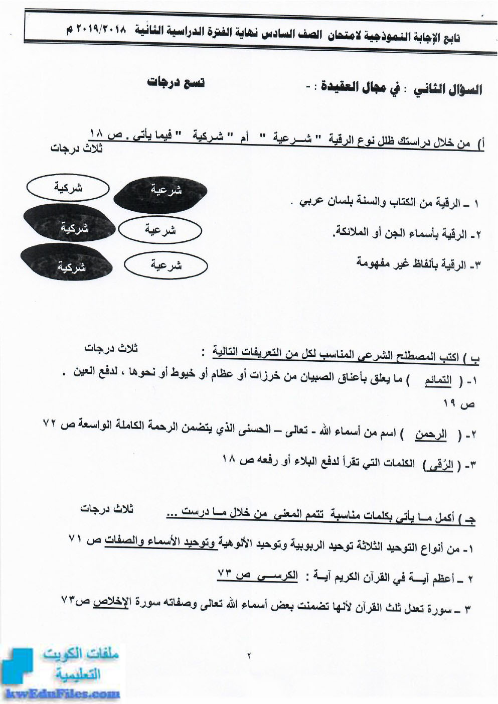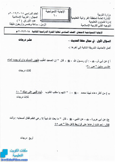 معلومات الملف: الاجابة النموذجية لامتحان نهاية الفصل الثاني من العام الدراسي 2018/2019 | ||