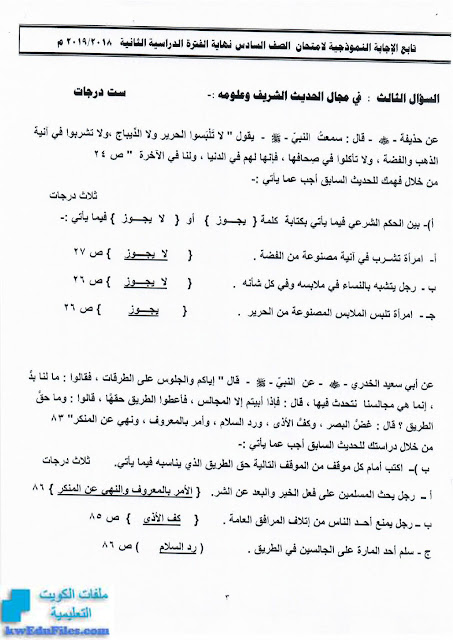 نموذج إجابة الفروانية - إعداد: منطقة الفروانية التعليمية | ||