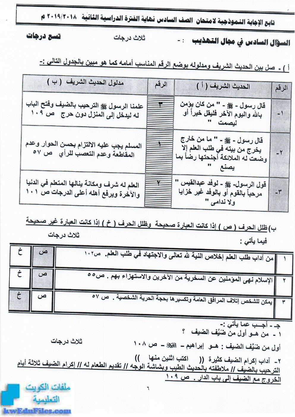 أحدث ملفات الصف السادس, الامتحانات, الفصل الثاني |