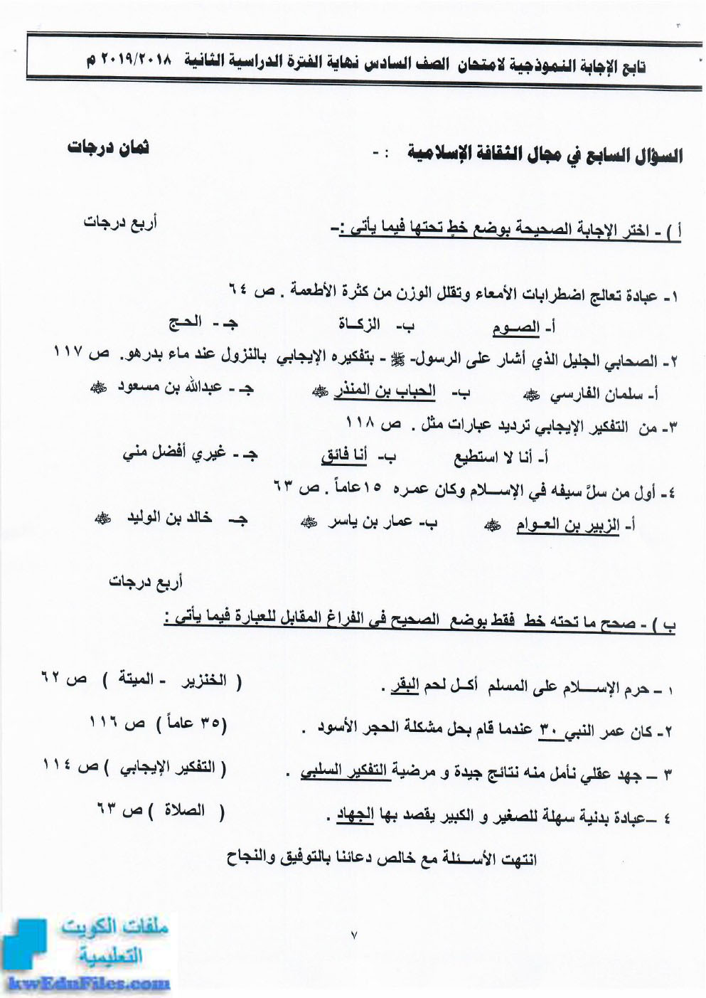 7. نموذج إجابة منطقة حولي التعليمية