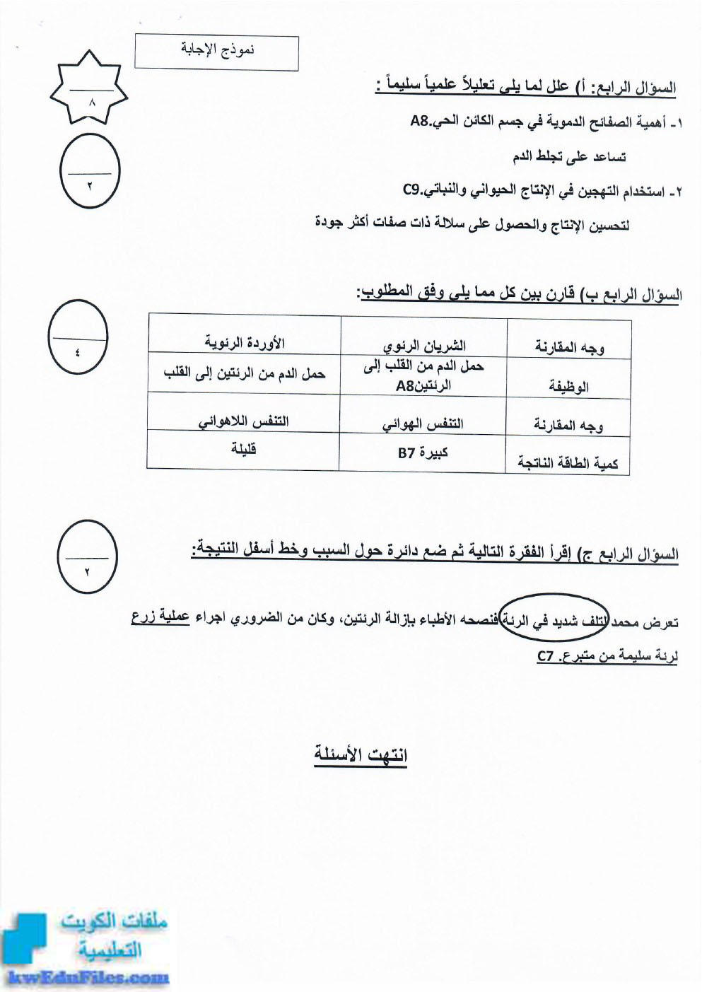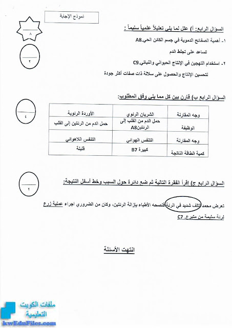4. نموذج إجابة منطقة الجهراء التعليمية