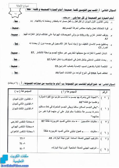 9. نموذج إجابة منطقة مبارك الكبير التعليمية