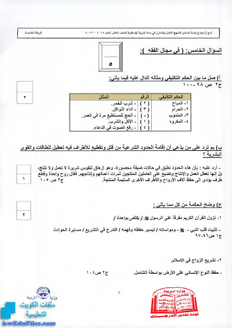 معلومات الملف: الاجابة النموذجية لامتحان نهاية الفصل الثاني من العام الدراسي 2018/2019 | ||