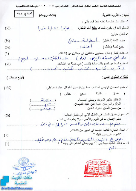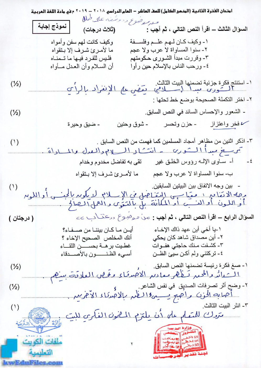 أنت هنا: موقع المناهجالمناهج الكويتية الصف العاشر لغة عربية الفصل الثاني حلول