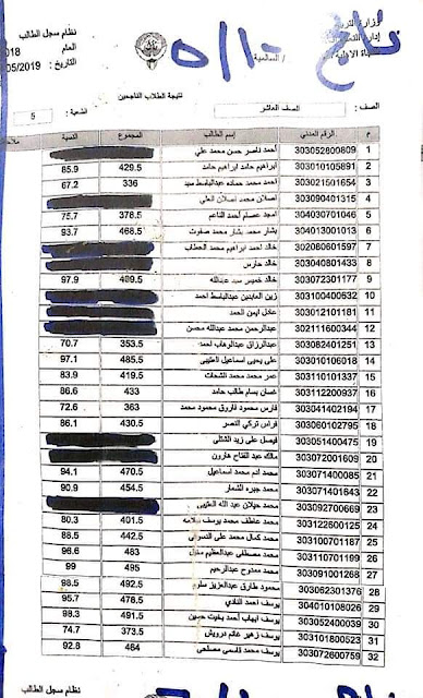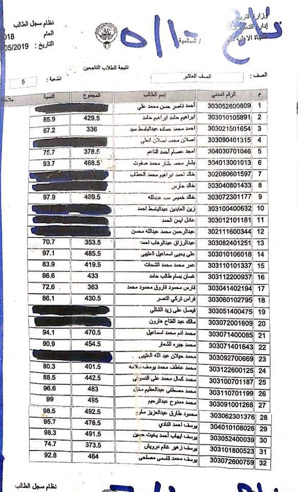 اليكم نتائج الصف العاشر وحادي عشر ...السالمية بنين 2018/2019