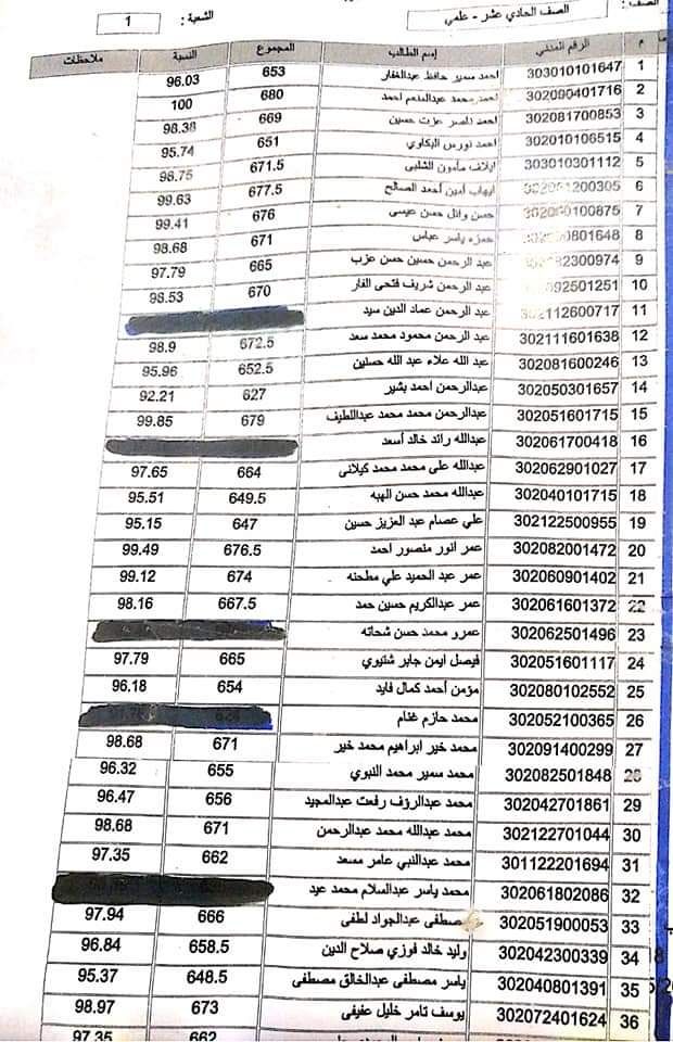 2. كشف بالطلبة الأوائل لقسم العلمي