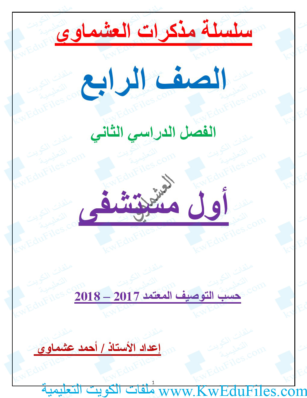 إليكم ملف ضمن سلسلة مذاكرات العشماوي للصف الرابع - الفصل الدراسي الثاني حسب التوصيف المعتمد 2017-2018