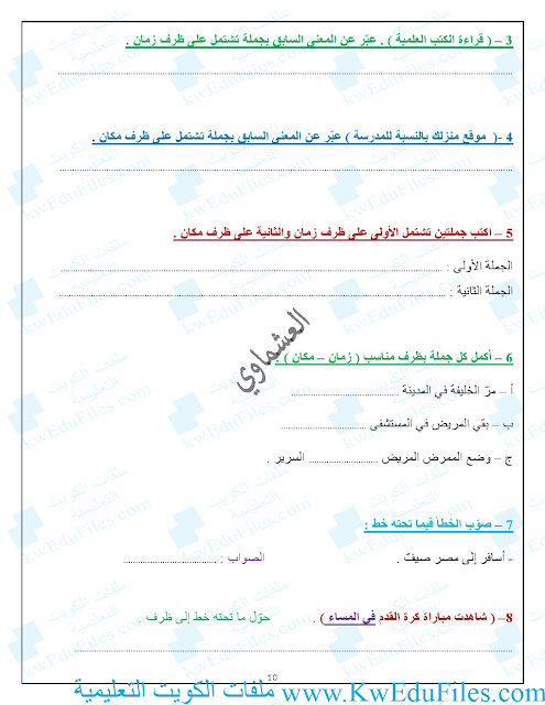 1. أسئلة اختبار تحصيلي ثالث للوحدة الثالثة