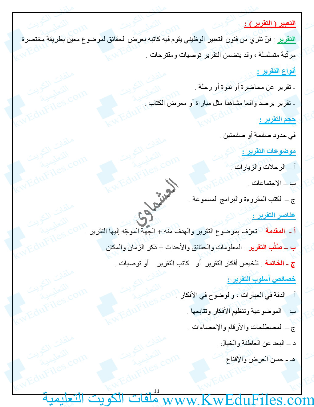 7. الصف الحادي عشر, لغة عربية, توقعات العشماوي للفاينل