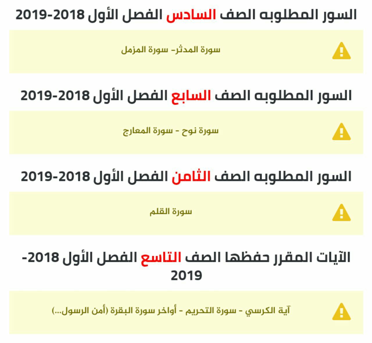 الآيات المقررة حفظها لجميع المواد, ملفات مدرسية, تربية اسلامية, الفصل الأول, 2018-2019 - المناهج الكويتية