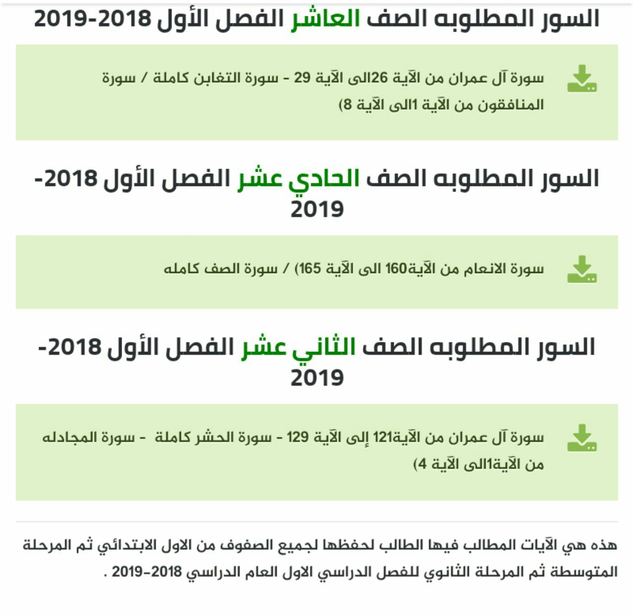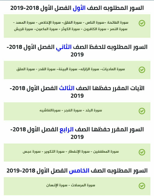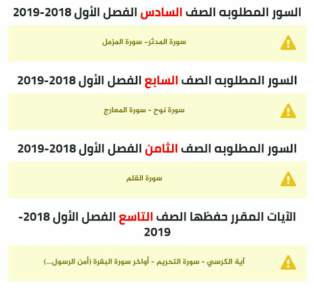 الآيات المقررة حفظها لجميع المواد 2018/2019
