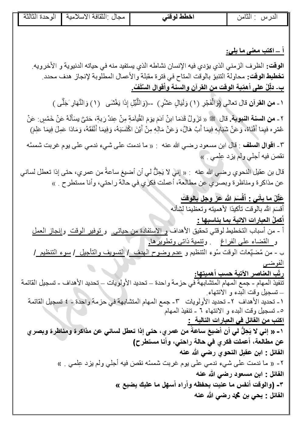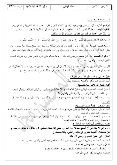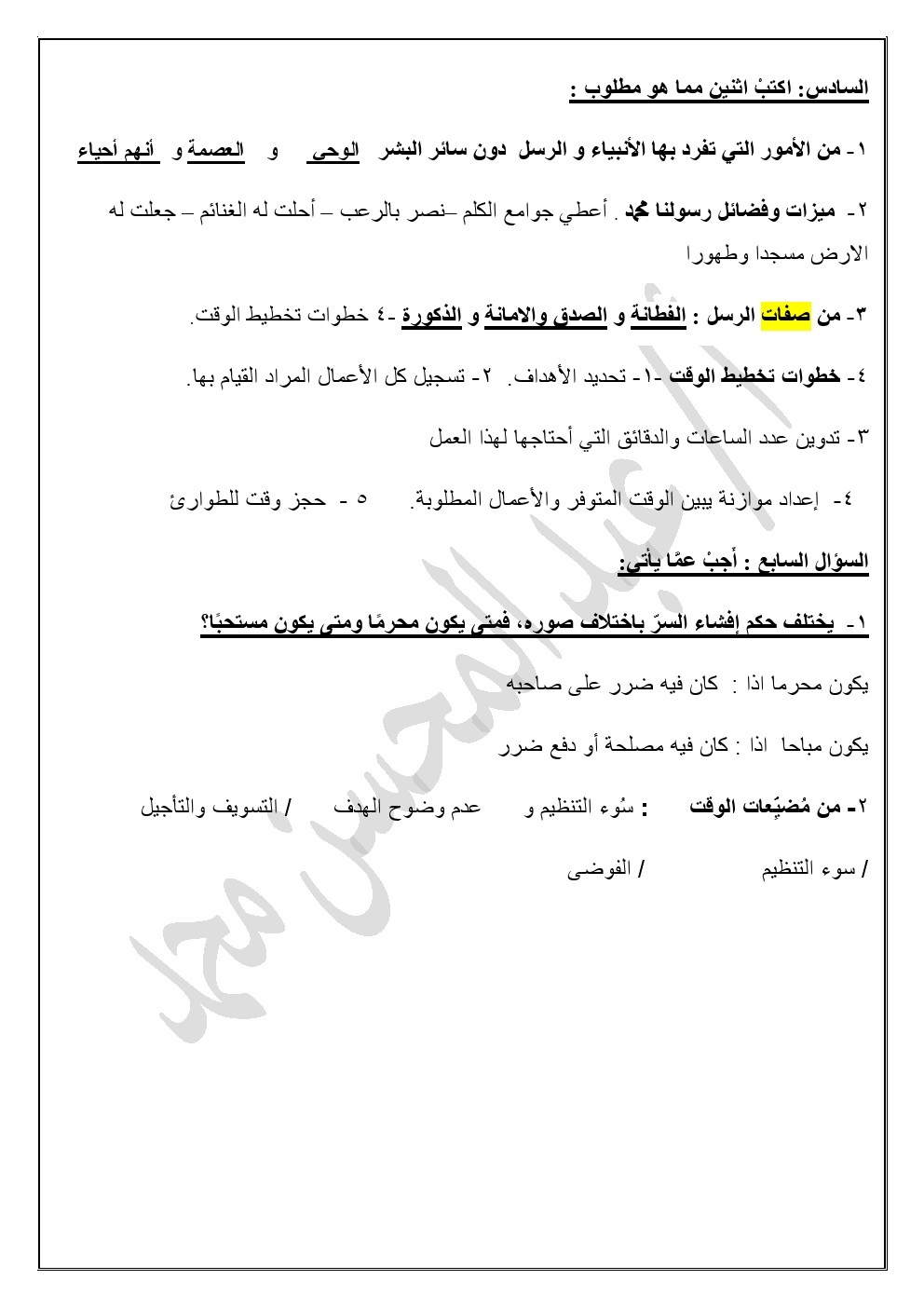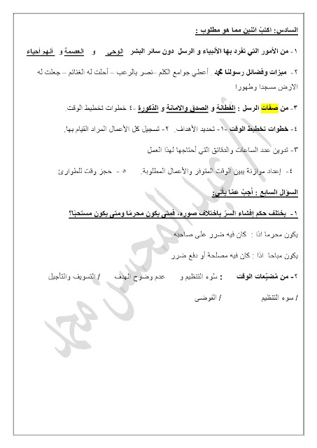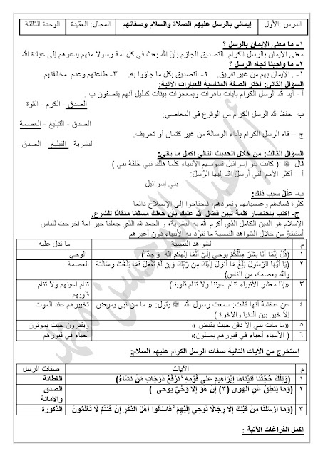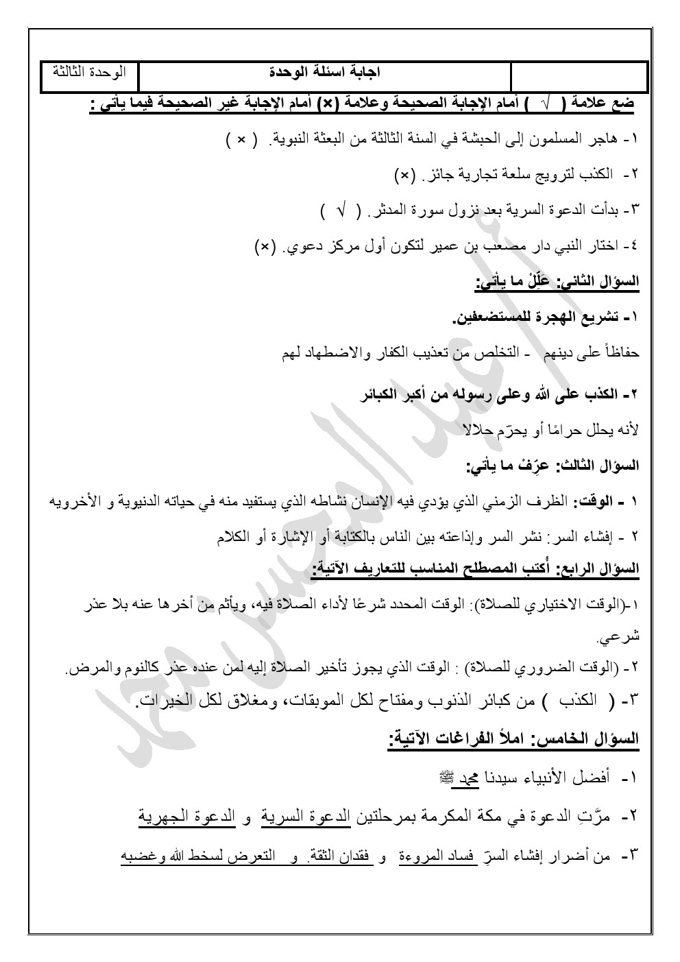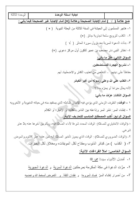 مذكرة في مادة التربية الاسلامية للصف السابع للفصل الدراسي الثاني عدد اوراق هذا الملف 20 ورقة وتتضمن البوحدة الثالثة