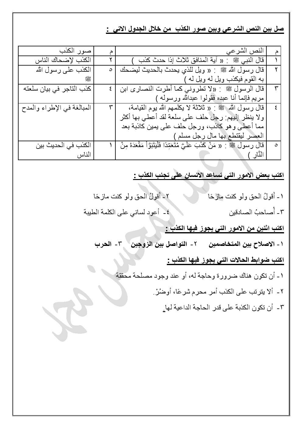 أحدث ملفات الصف السابع, تربية اسلامية, الفصل الثاني