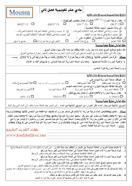 أحدث ملفات الصف الحادي عشر العلمي, الامتحانات, الفصل الثاني