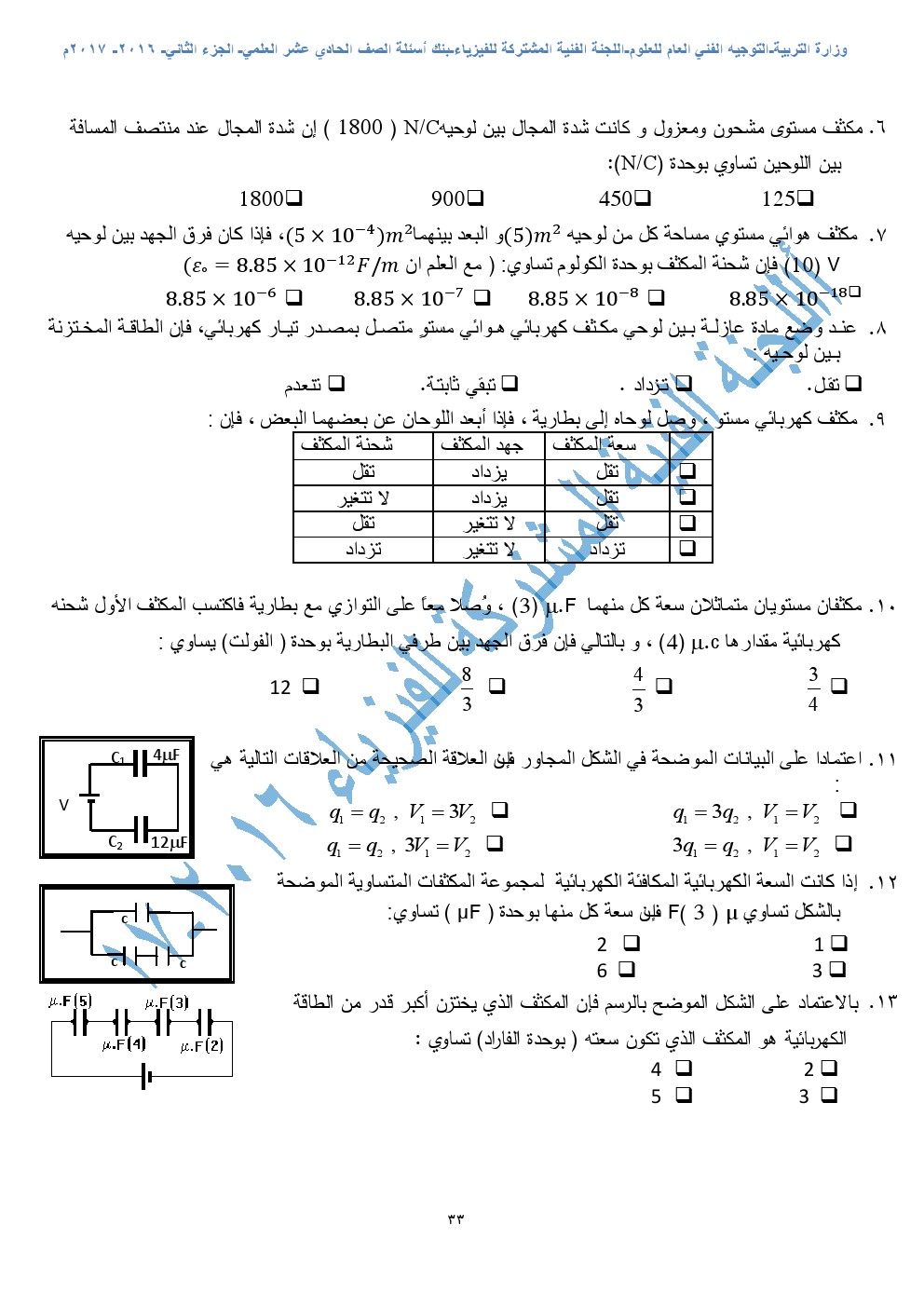أحدث ملفات الصف الحادي عشر العلمي, فيزياء, الفصل الثاني