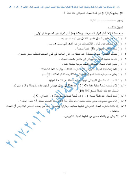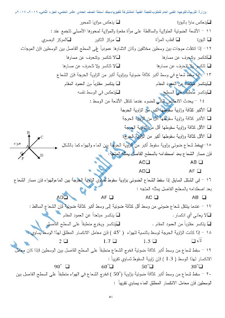 11. فيزياء, الفصل الأول, 2025-2026, بنك الأسئلة والأجوبة الرسمي