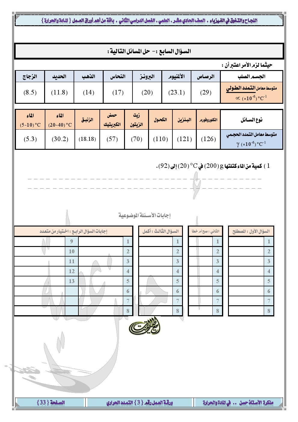 13. الصف العاشر, فيزياء, تحليل اختبارات قصيرة تشمل الميكانيكا والحركة