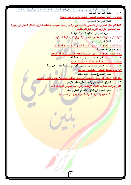 9. جيولوجيا, الفصل الأول, 2025-2026, نماذج محلولة للاختبار القصير الثاني