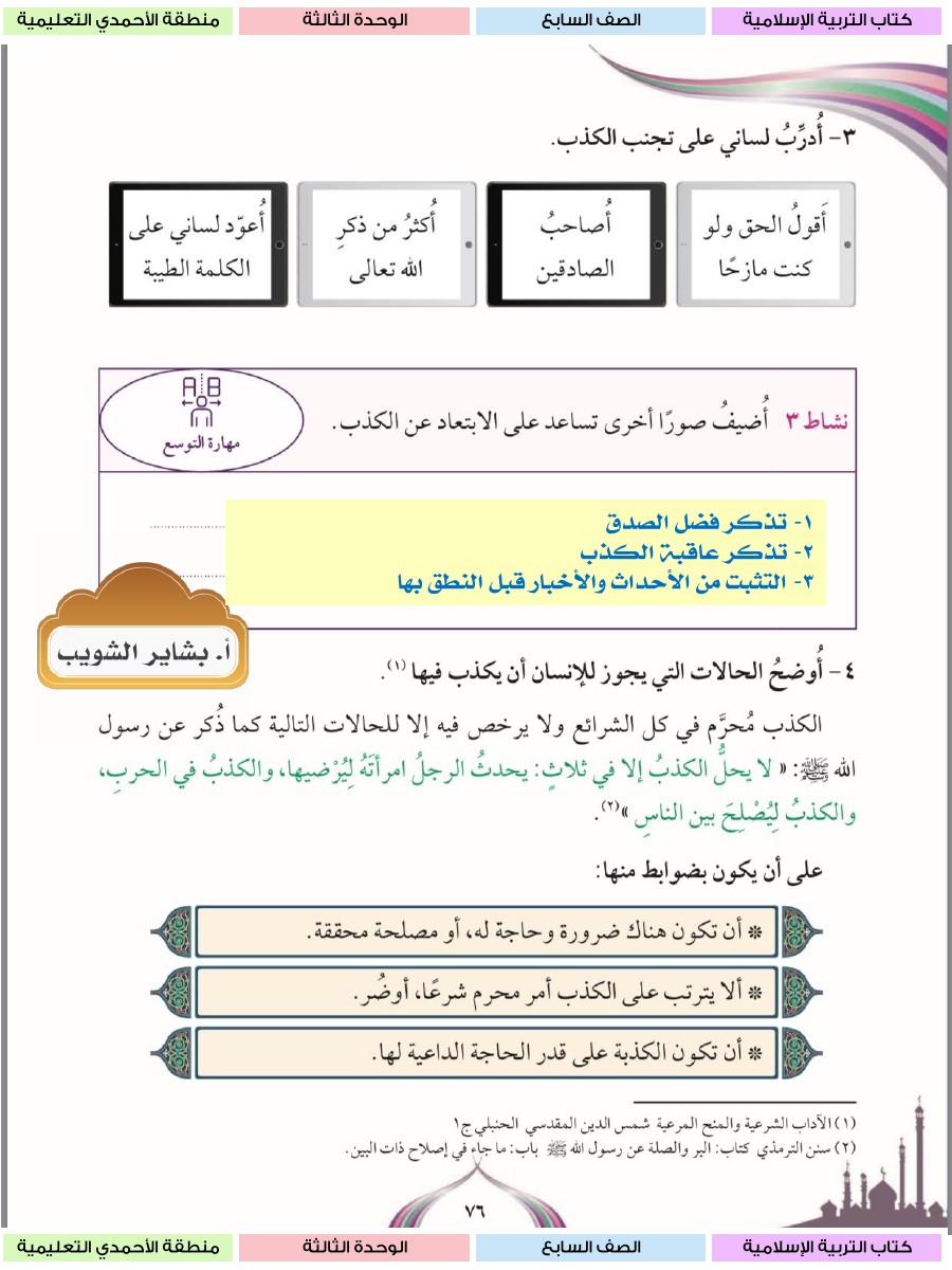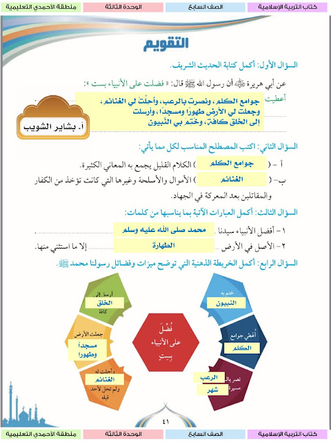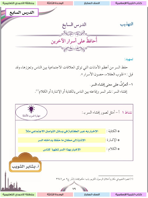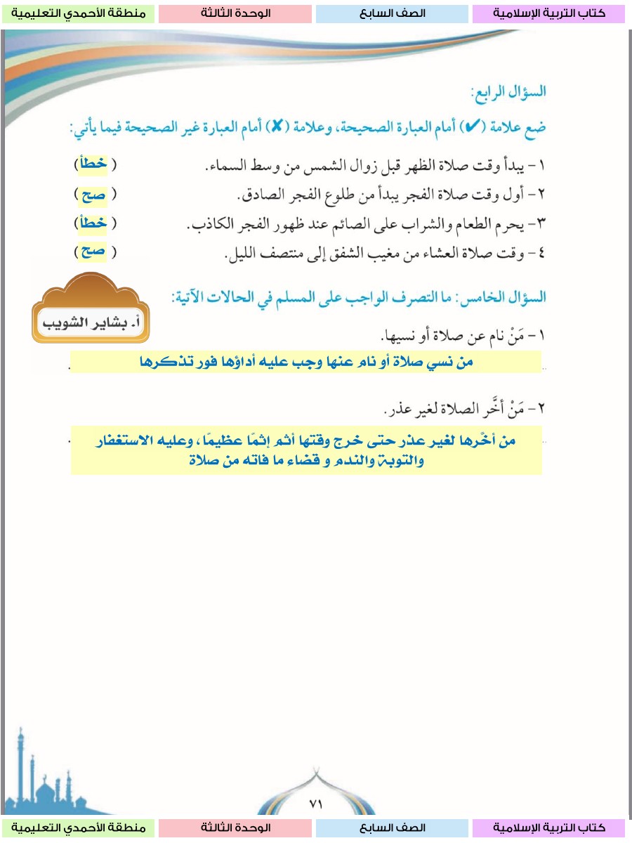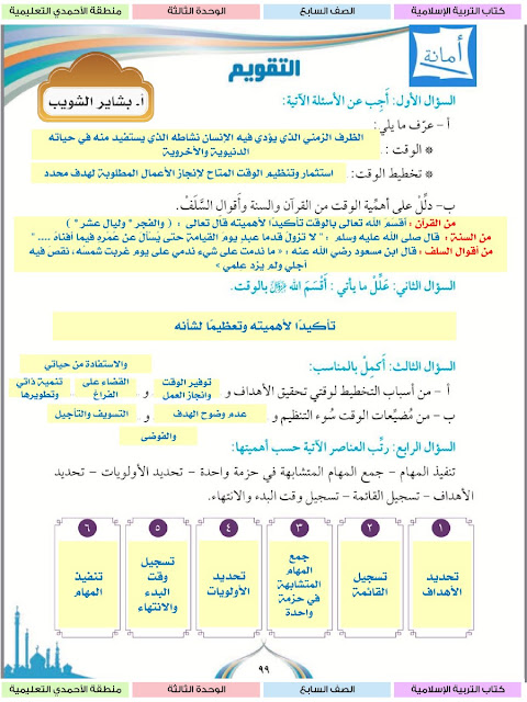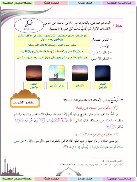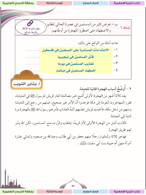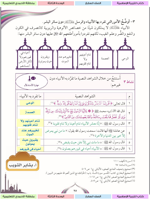 حل الوحدة الثالثة كاملة مع الاجابة للتربية الاسلامية