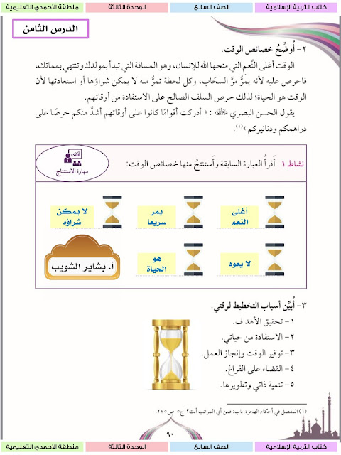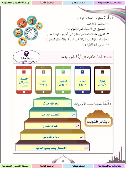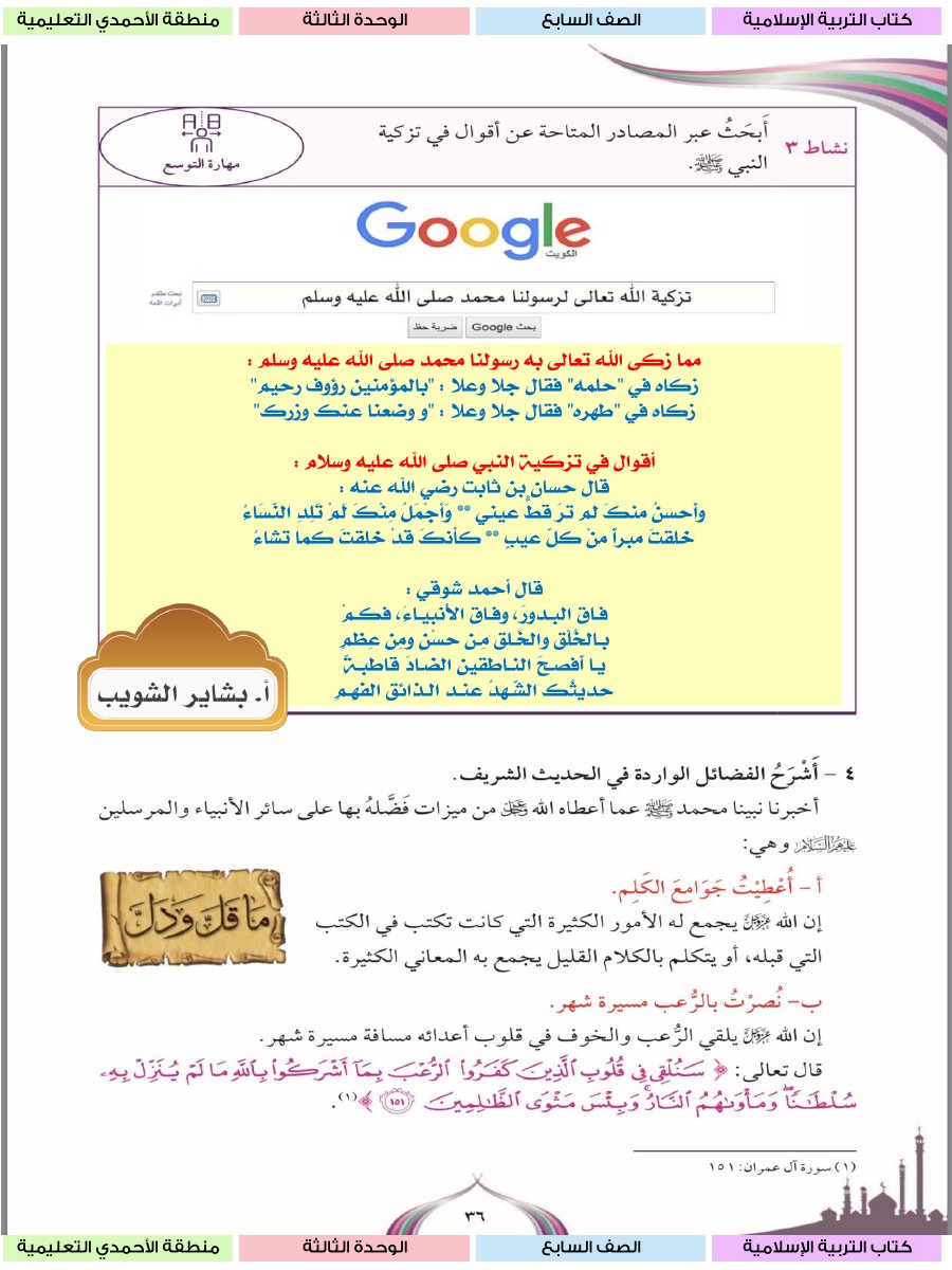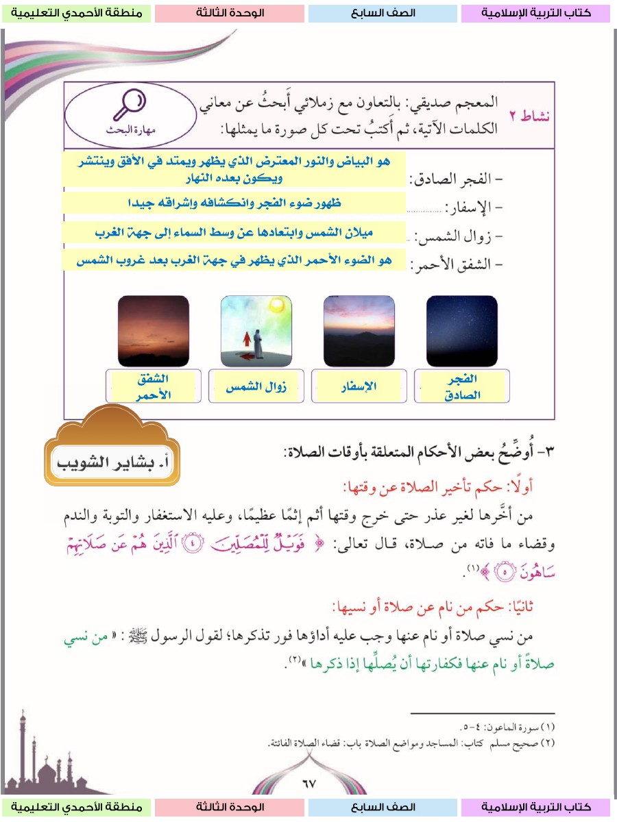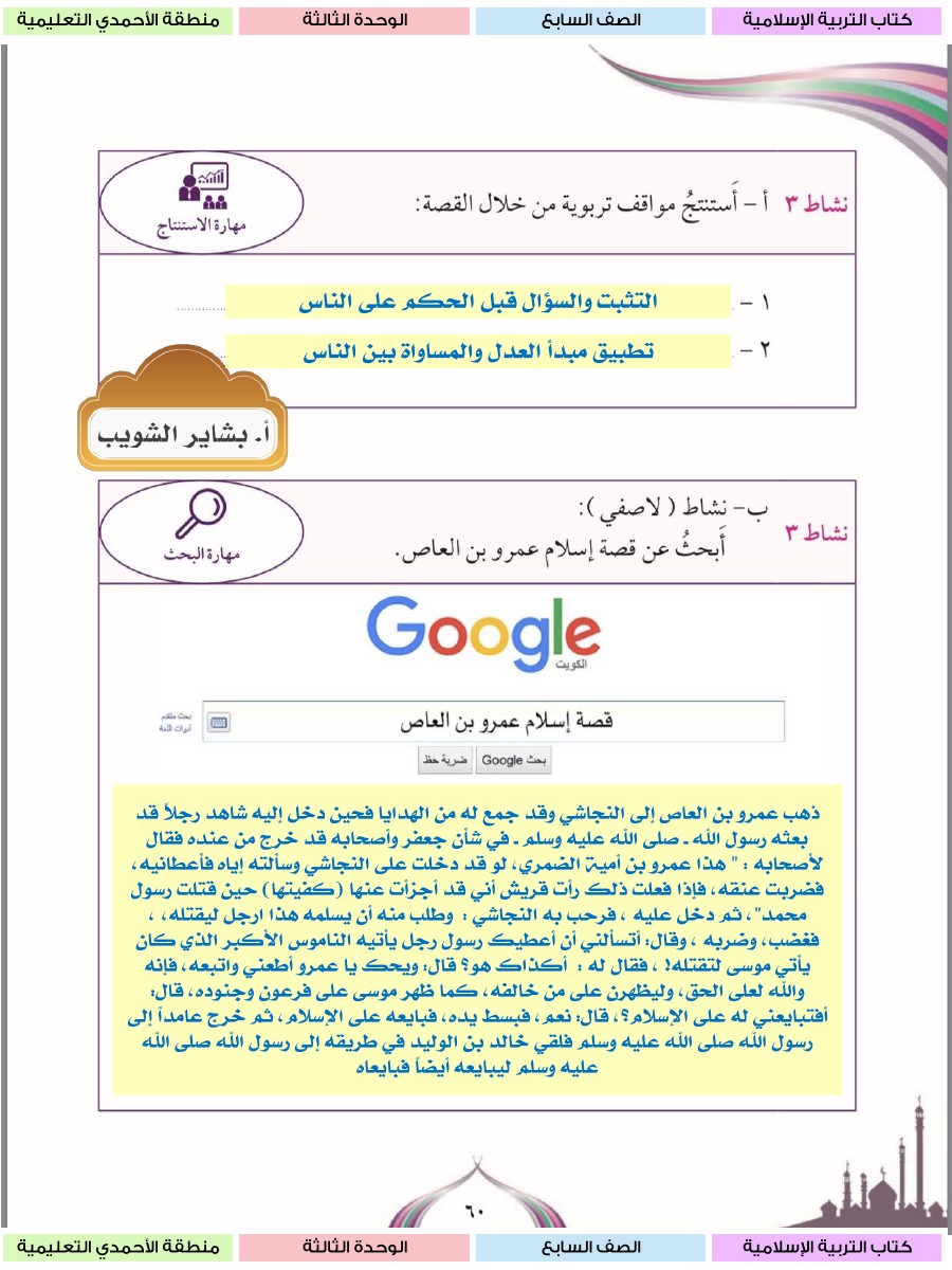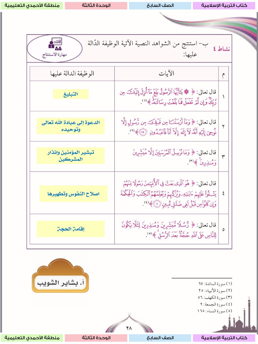 حل الوحدة الثالثة كاملة مع الاجابة للتربية الاسلامية