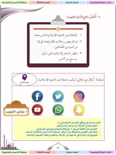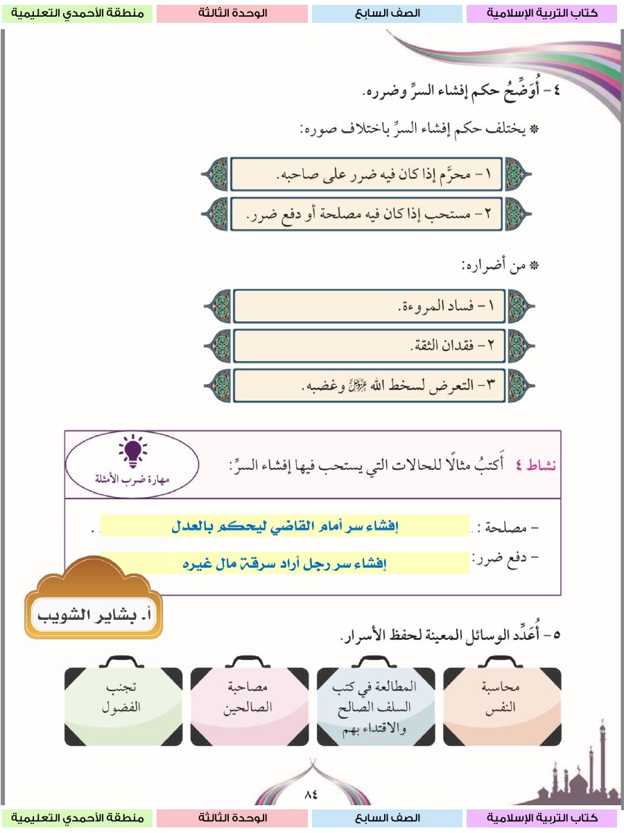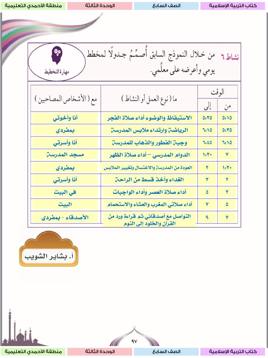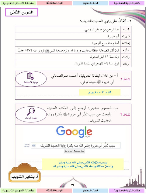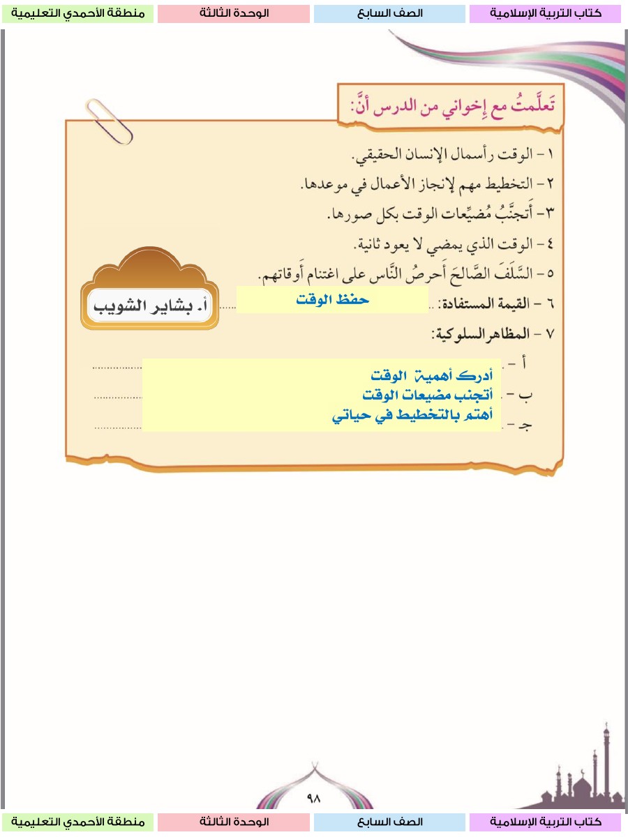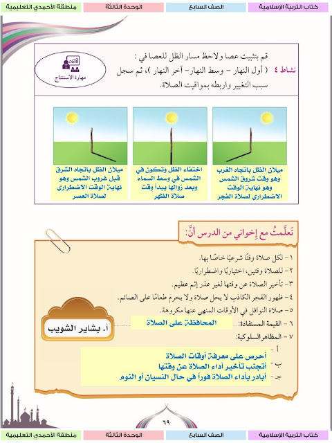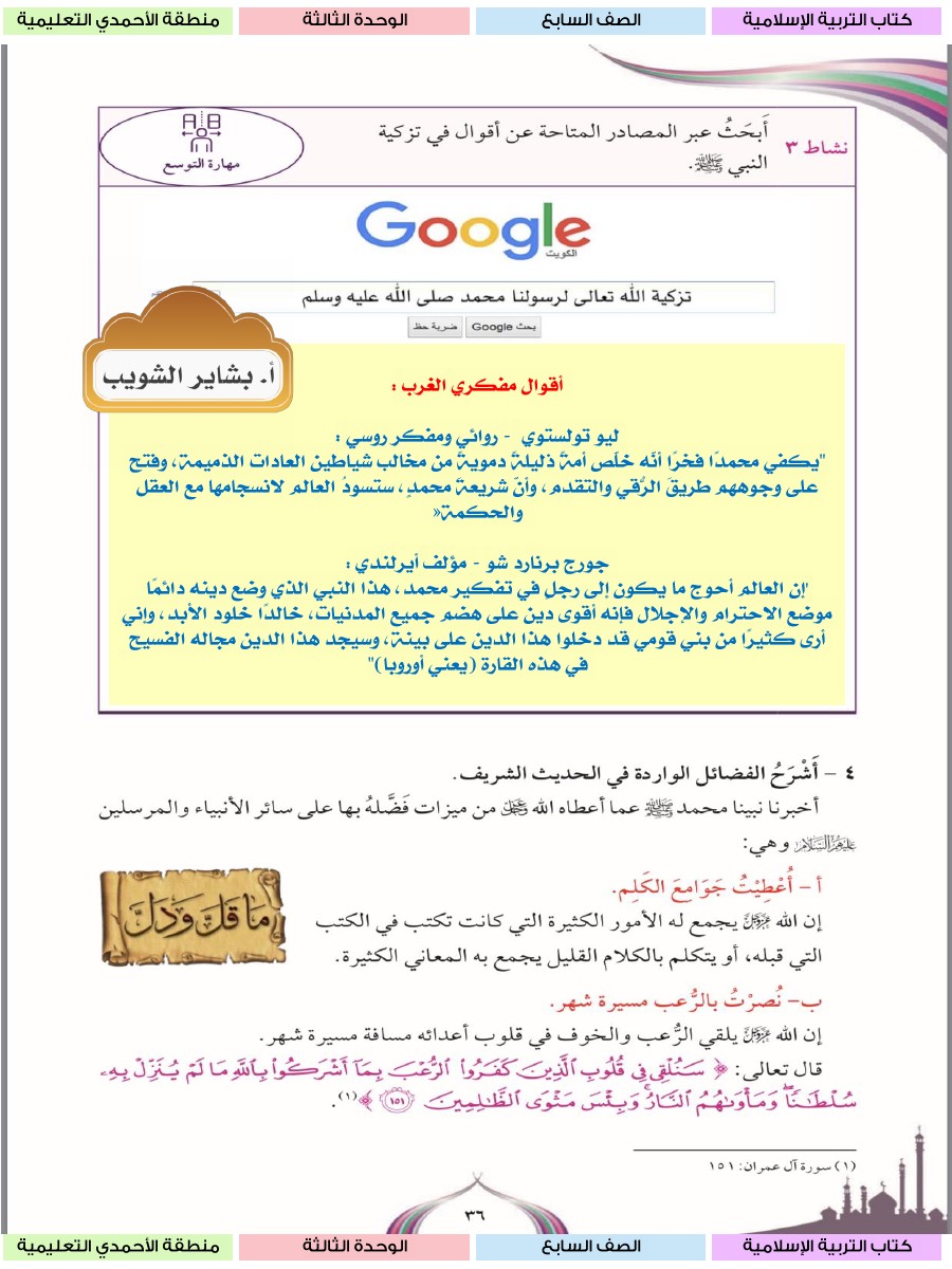 حل الوحدة الثالثة كاملة مع الاجابة للتربية الاسلامية
