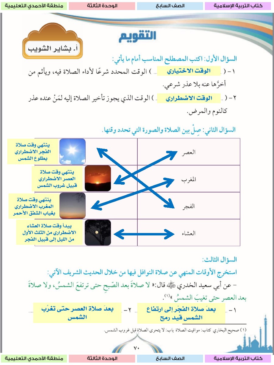 7. تربية اسلامية, الفصل الأول, 2025-2026, تحميل حل كتاب الطالب