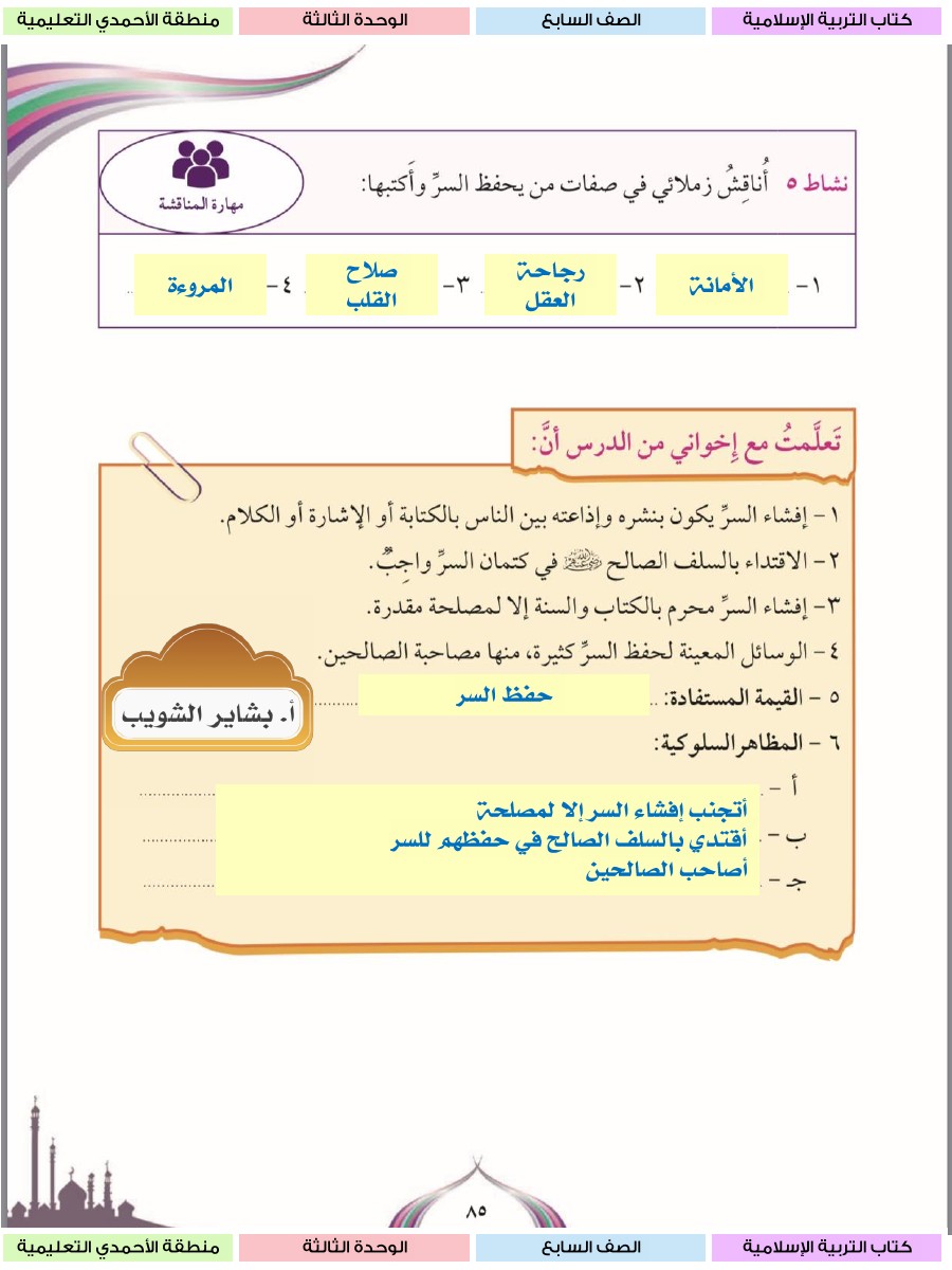 أحدث ملفات الصف السابع, تربية اسلامية, الفصل الثاني