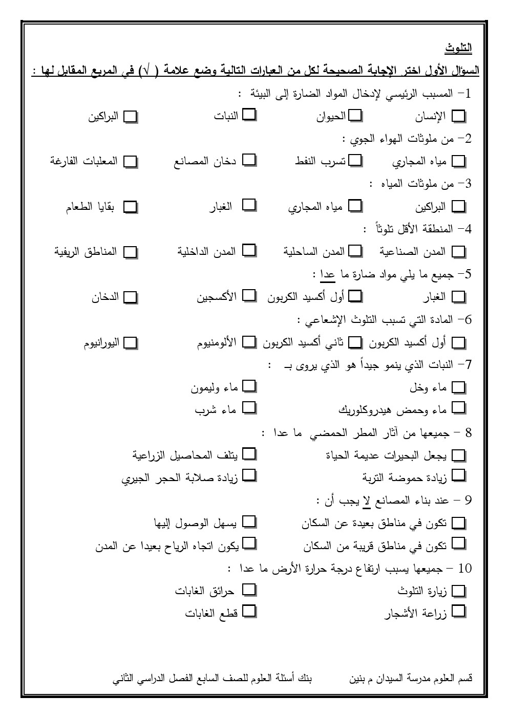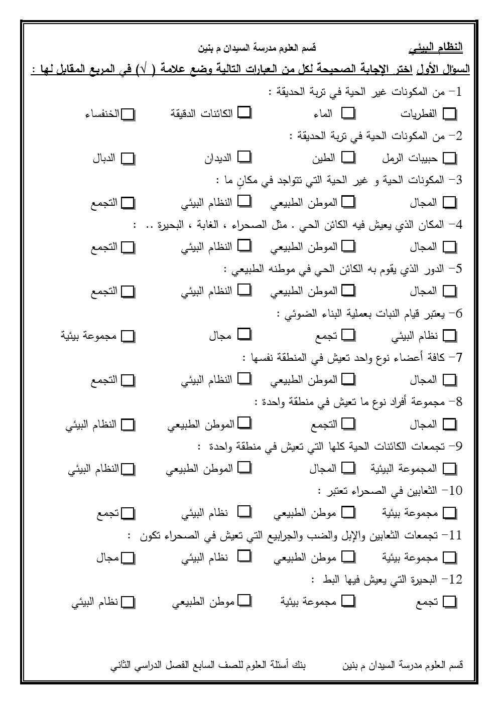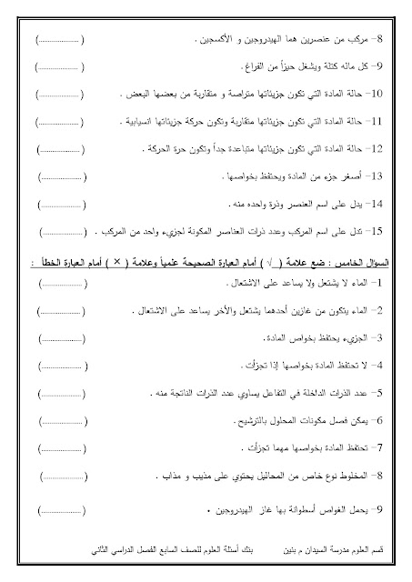 | تم إيجاد الملف: بنك اسئلة لمادة العلوم