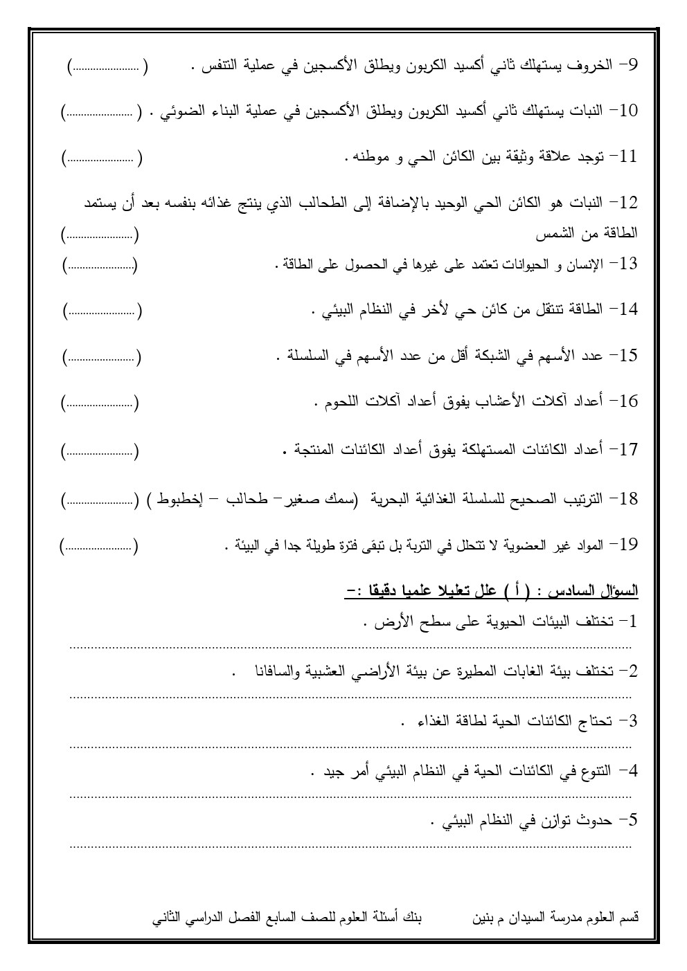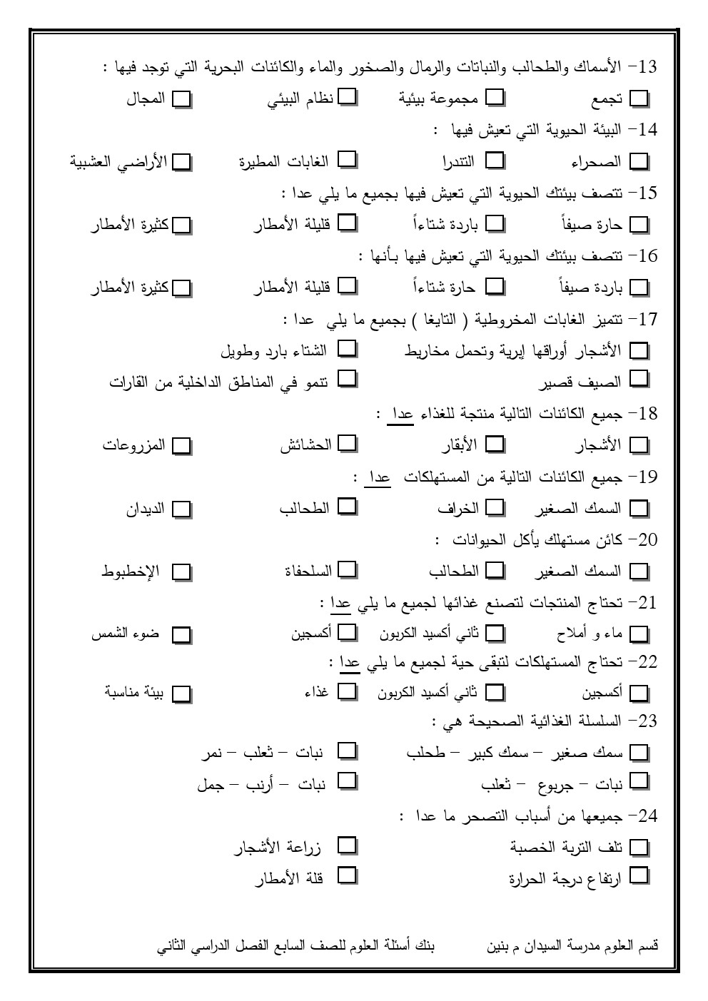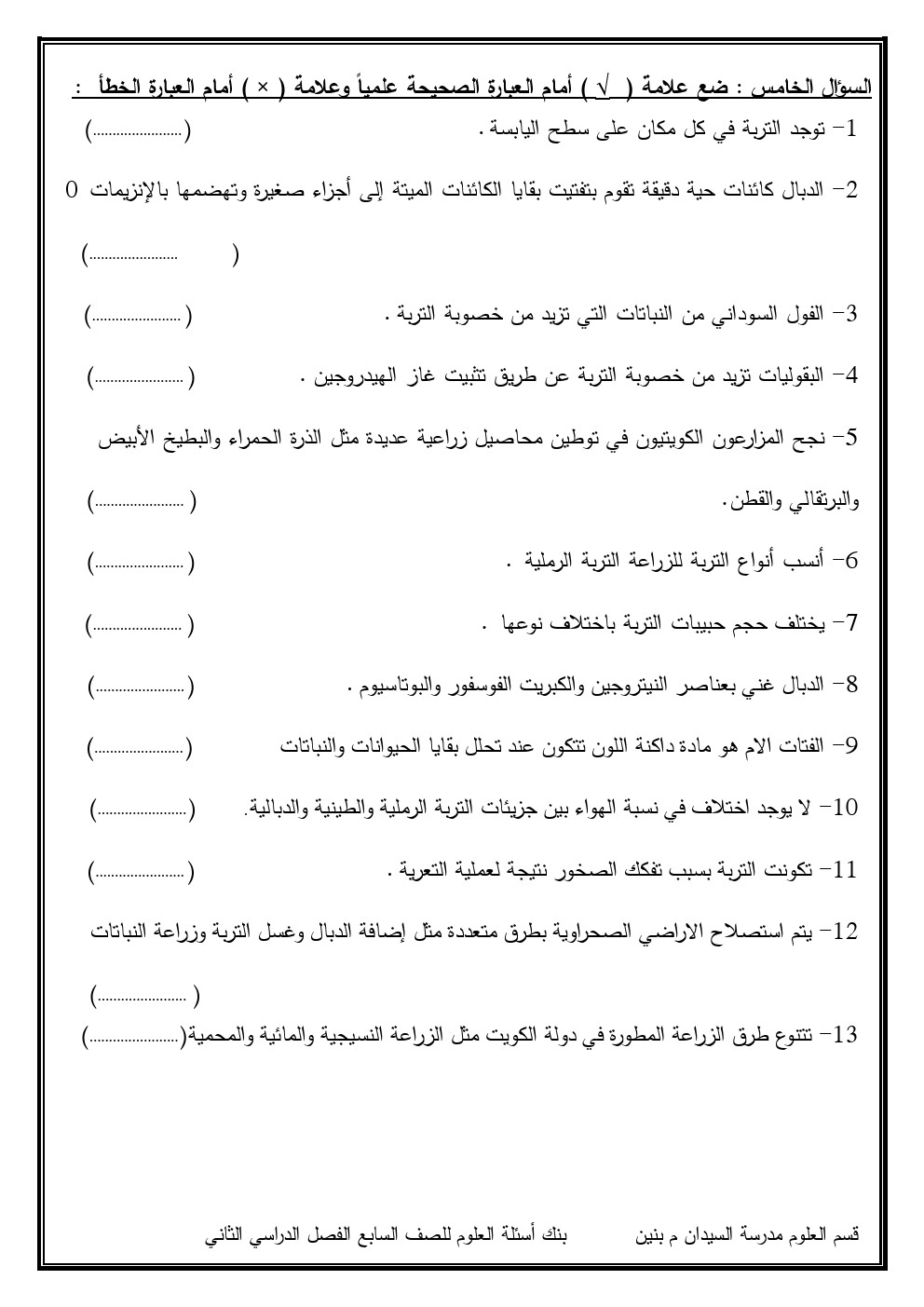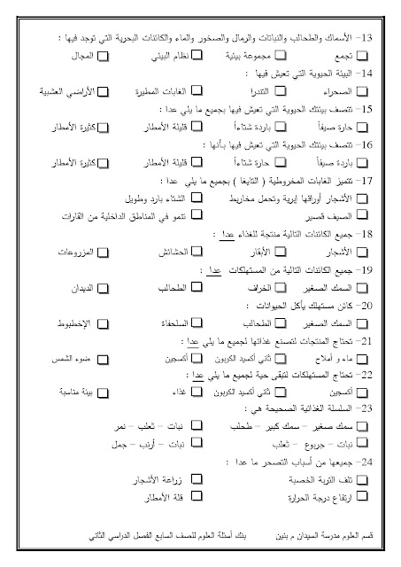 | معلومات الملف: بنك اسئلة في مادة العلوم للصف السابع للفصل الدراسي الثاني عدد اوراق هذا الملف 70 ورقة ويتضمن بنك اسئلة السيدان | ||