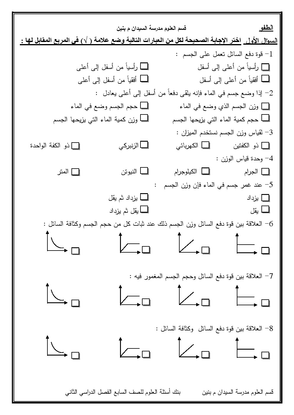| أنت هنا: موقع المناهج ⇦ المناهج الكويتية ⇦ الصف السابع ⇦ علوم ⇦ الفصل الثاني ⇦ مذكرات وبنوك |