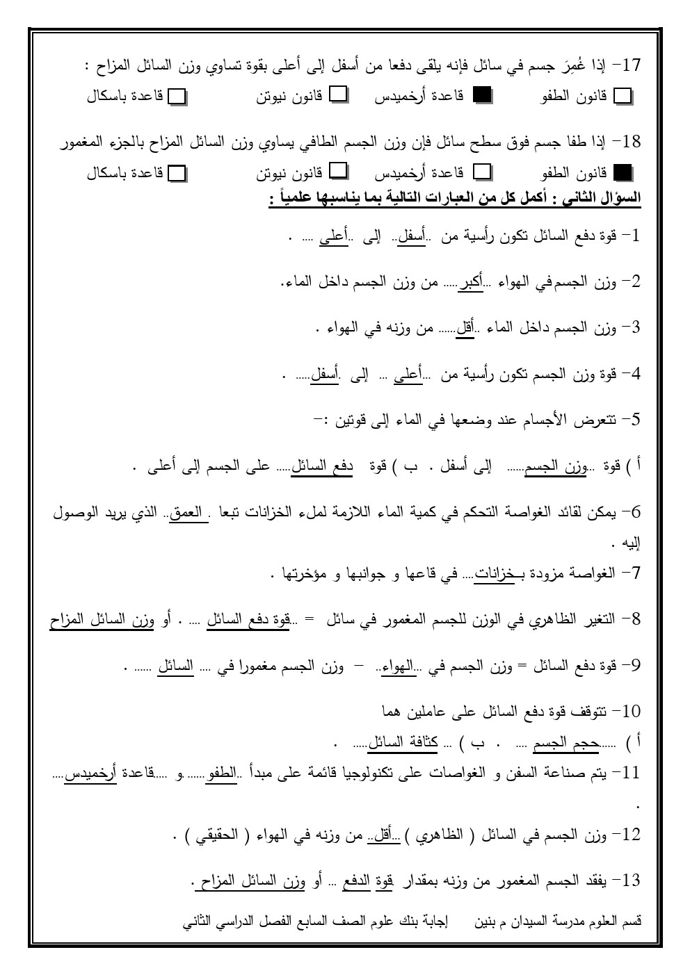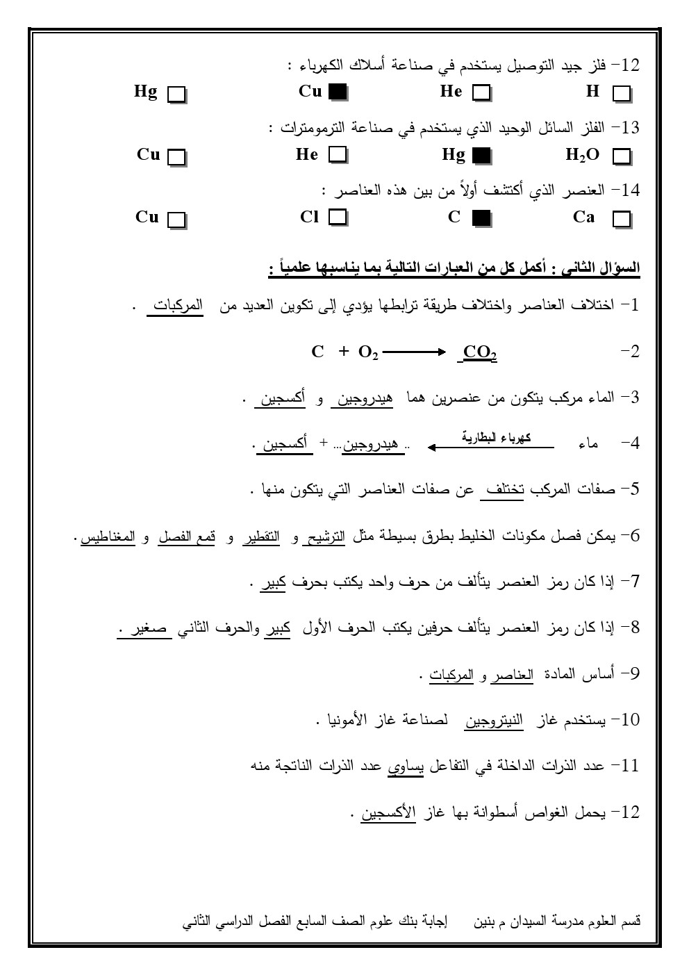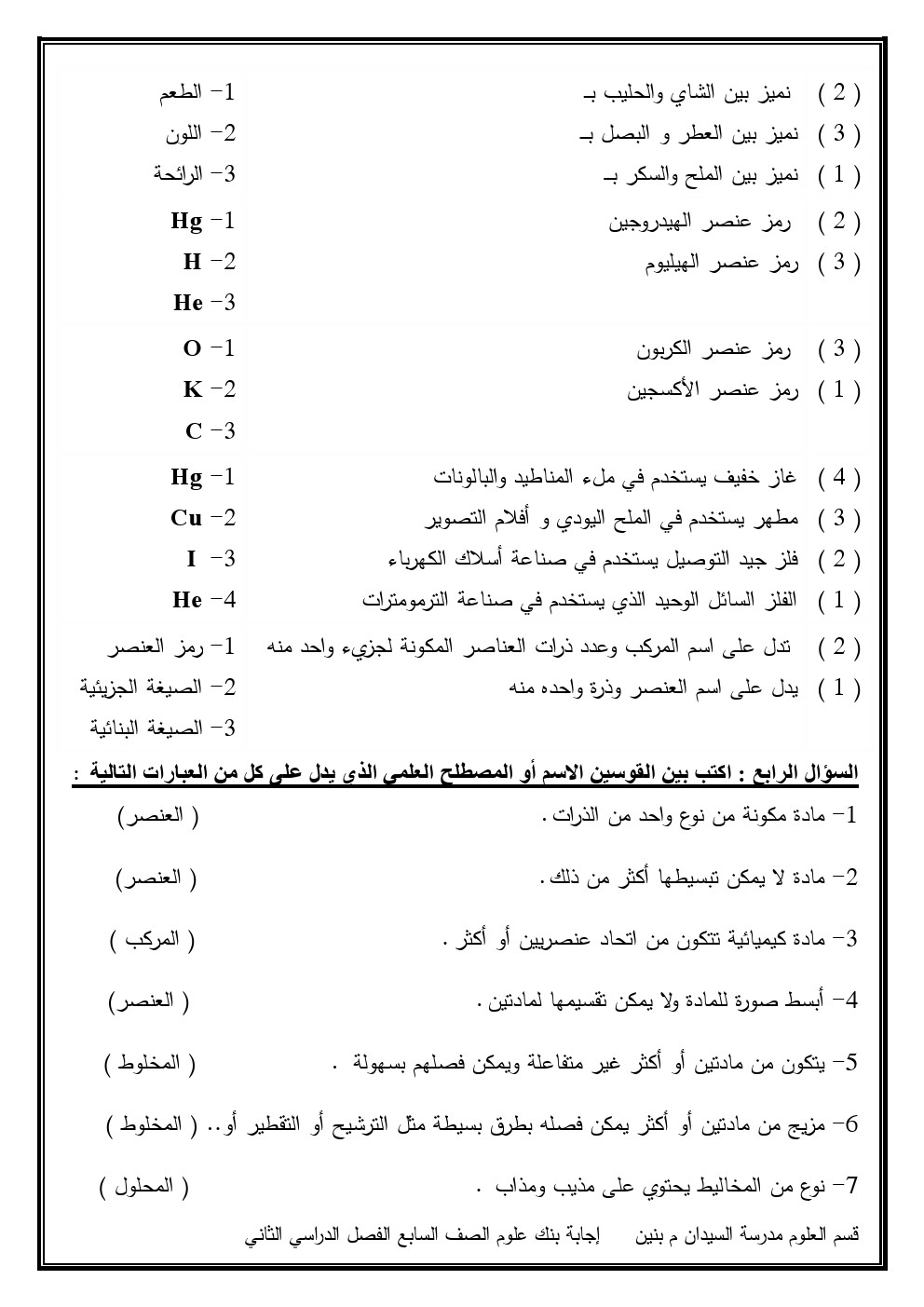 اجابة بنك اسئلة في مادة العلوم للصف السابع للفصل الدراسي الثاني عدد اوراق هذا الملف 73 ويتضمن اجابة بنك اسئلة السيدان