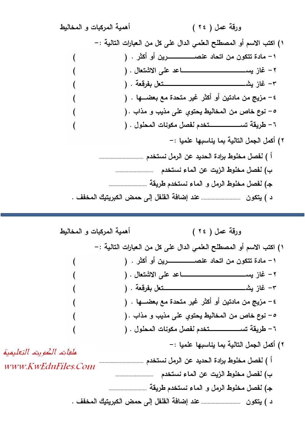 تم إيجاد الملف: ورقة عمل 24 لمادة العلوم