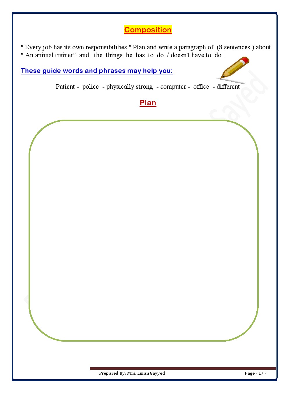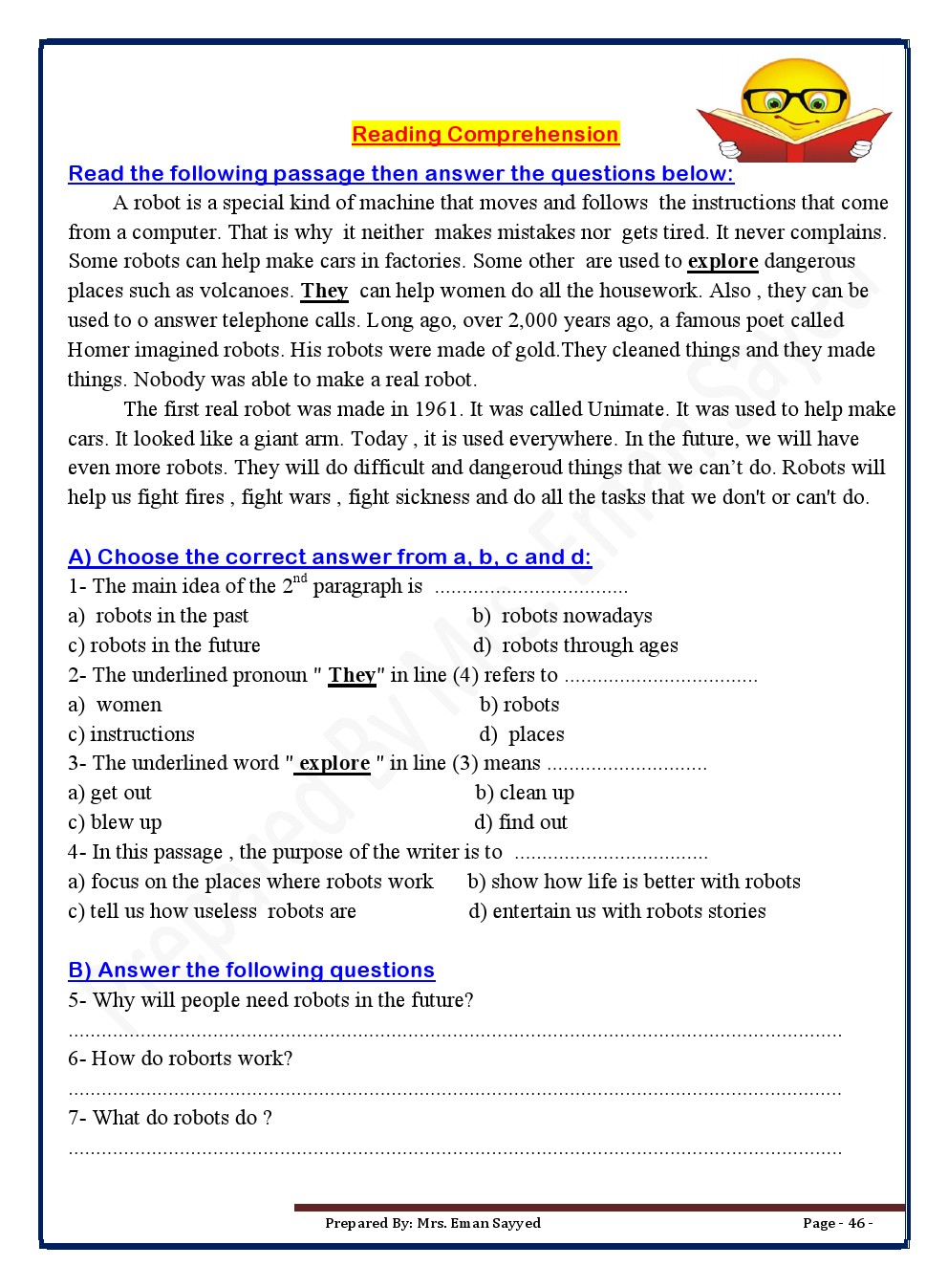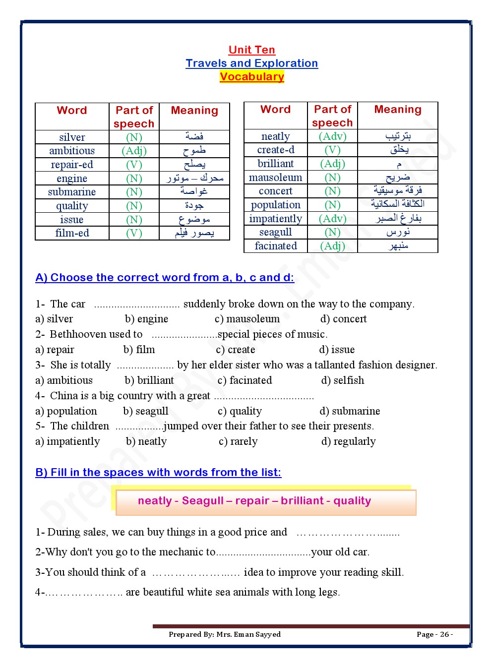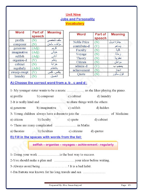 معلومات الملف: مذكرة ممتازة في مادة اللغة الانكليزية للصف السابع للفصل الدراسي الثاني عدد اوراق هذا الملف 49 ورقة ويتضمن:Unit7:Journy To The Past *Unit8:The Work We Do *Unit 9: Jops And Pesonality *Unit10: Travels And Exploration *Unit11: Energy And Recycling *Unit12: Prediction The Future | ||