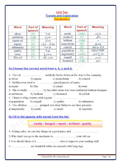 | مذكرة ممتازة ورائعة في اللغة الانكليزية | ||