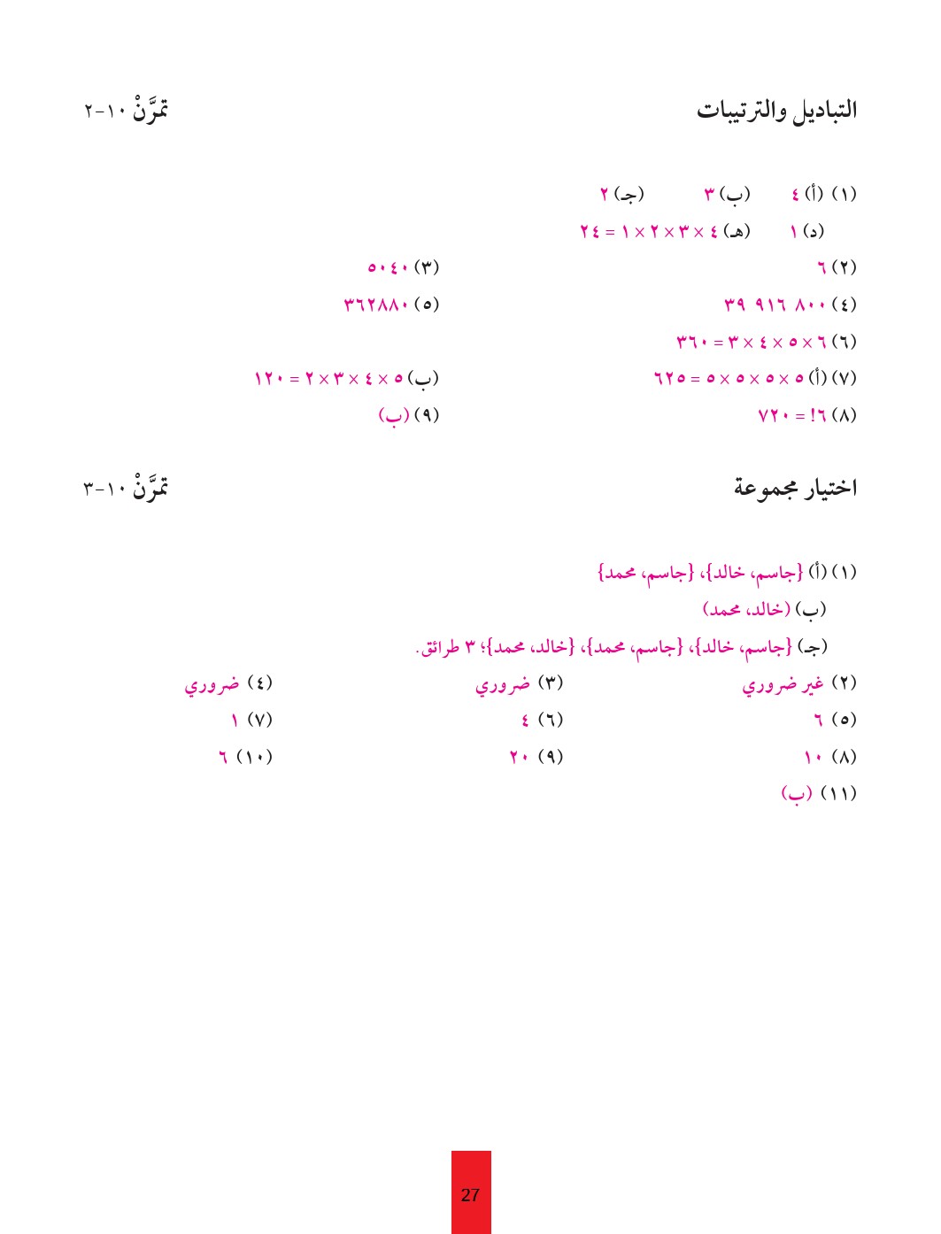 2. رياضيات, الفصل الأول, 2025-2026, حلول التمارين الذاتية