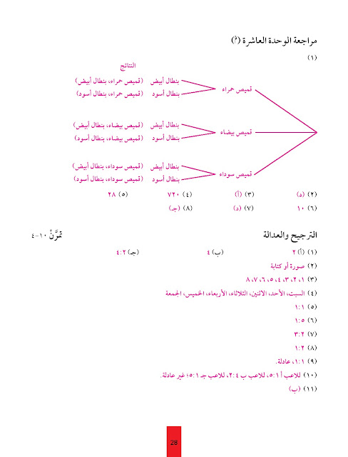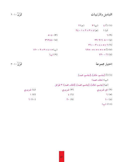 حل كتاب التمارين لمادة الرياضيات