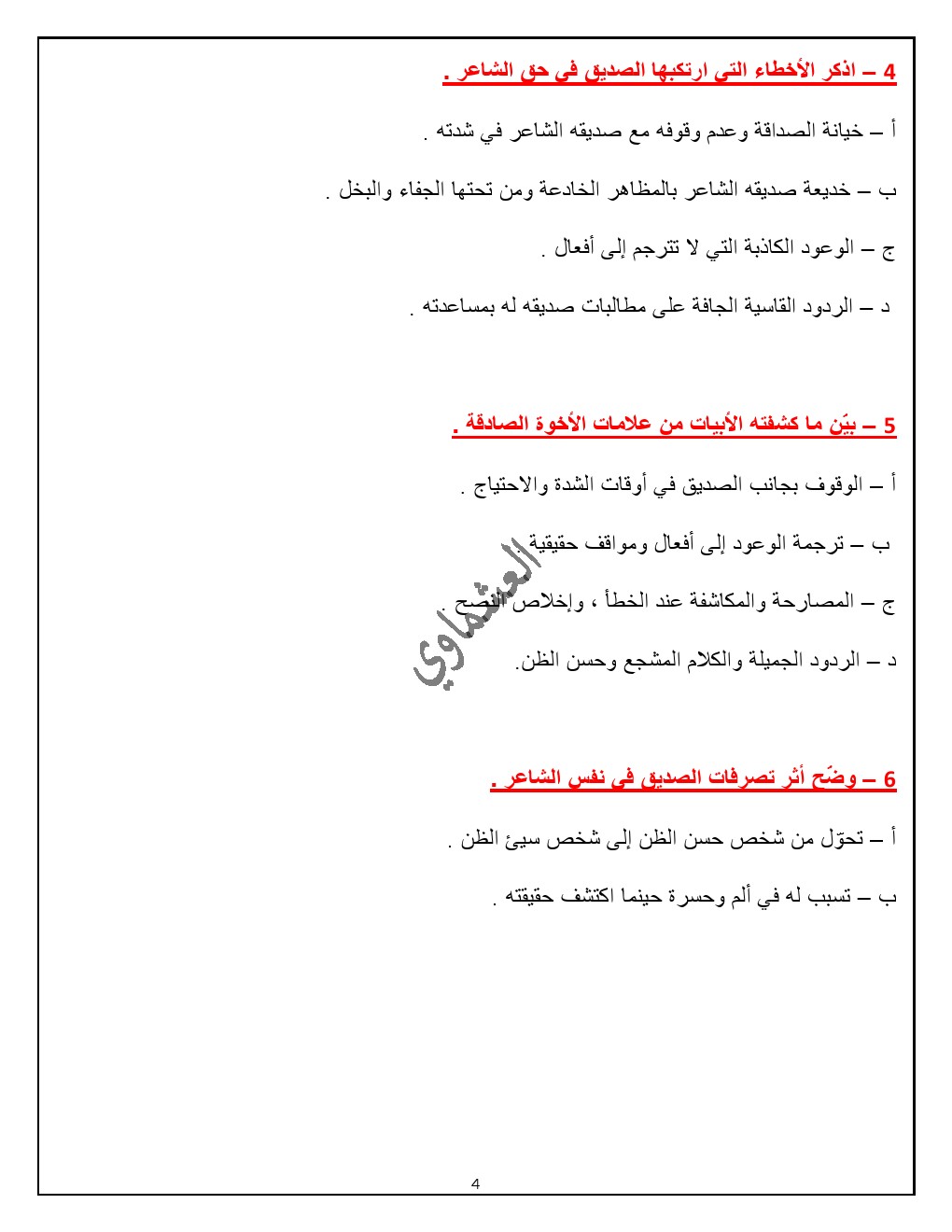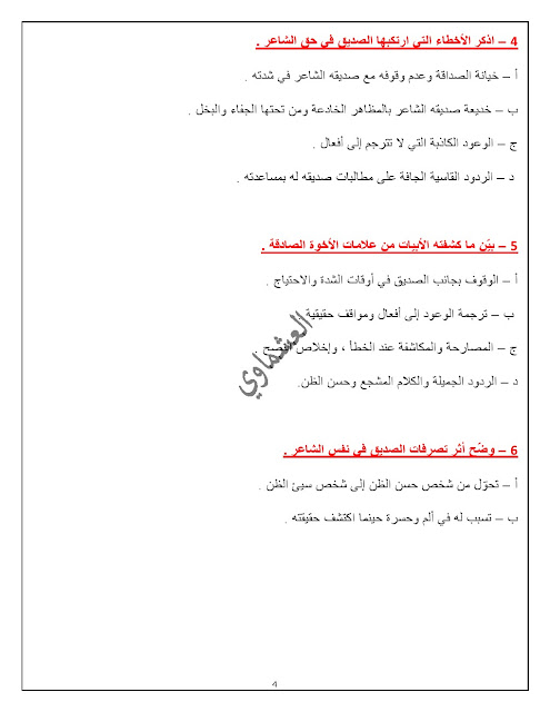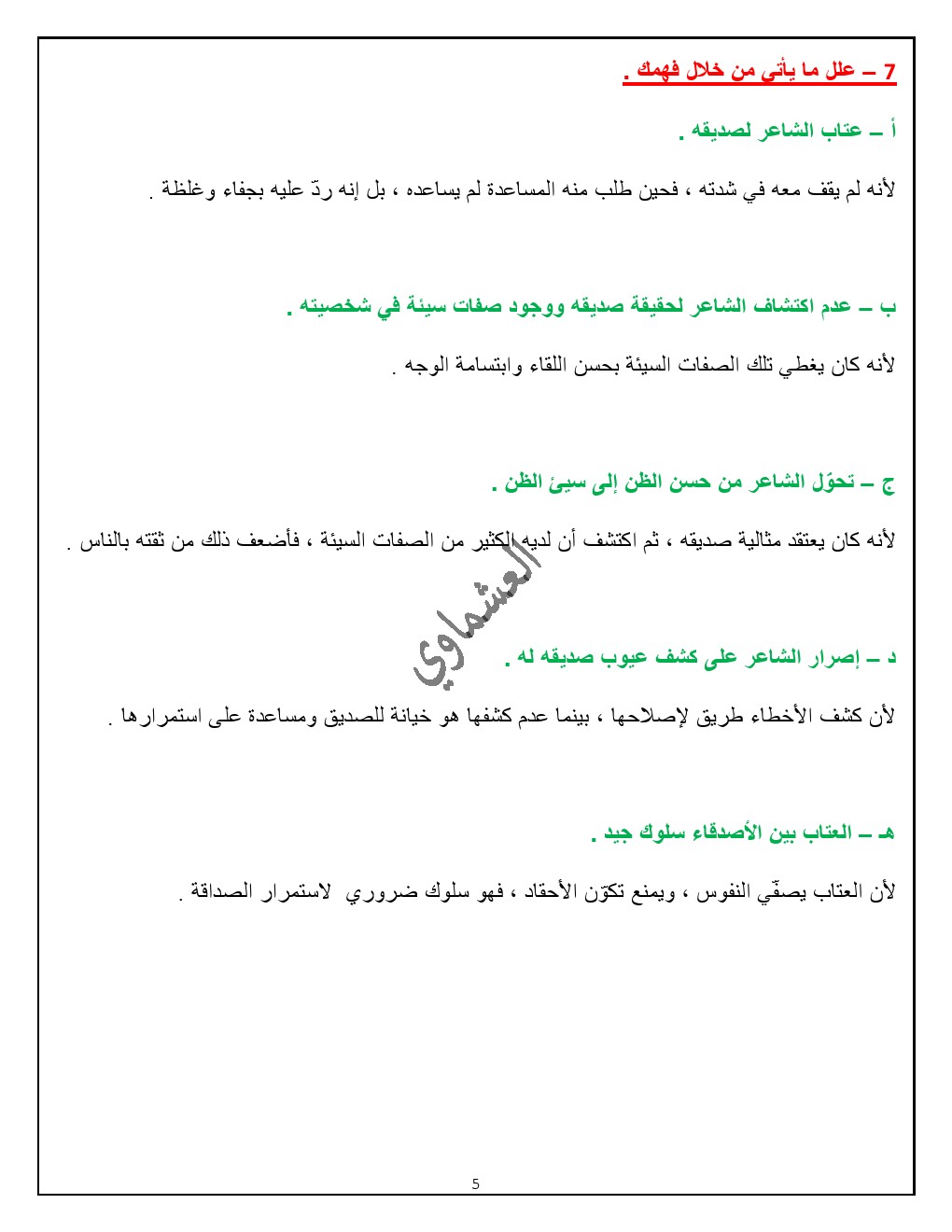 7. مذكرة الاختبار القصير للموضوع الثالث وقفة على طلل والموضوع الرابع سيل العرم مع الإجابة