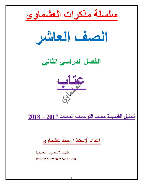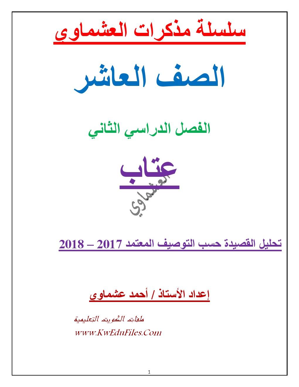 الدرس قبل الخير في مادة اللغة العربية للصف العاشر للفصل الدراسي الثاني عدد اوراق هذا الملف 19 ورقة ويتضمن تحليل درس عتاب حسب التوصيف المعتمد