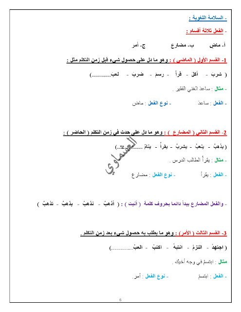 9. لغة عربية, الفصل الأول, 2025-2026, ورقة عمل على الاختبار التجريبي الأول
