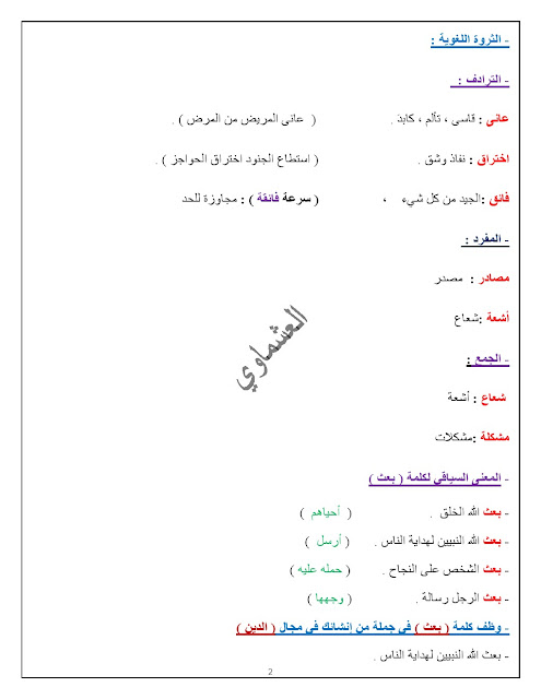 الدرس الخامس في مادة اللغة العربية - إعداد: العشماوي | ||