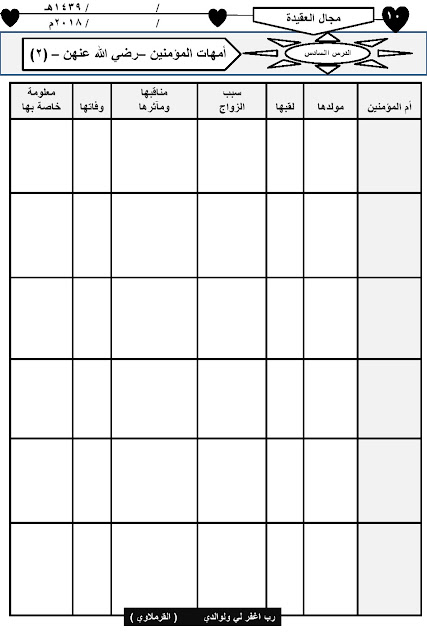 | مذكرة لدروس مجالات الصف الثامن في مادة التربية الاسلامية | ||