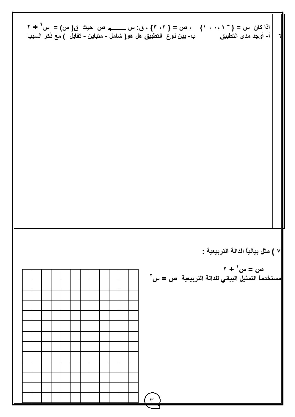 3. رياضيات, الفصل الأول, 2025-2026, نماذج اختبارات تقويمية