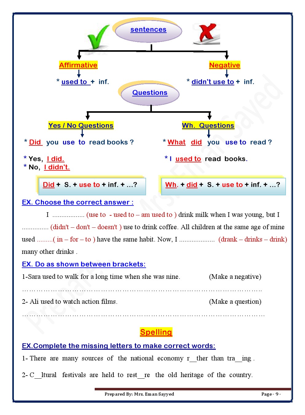 مذكرة للوحدات من (الوحدة السابعة وحتى الثانبة عشر)
