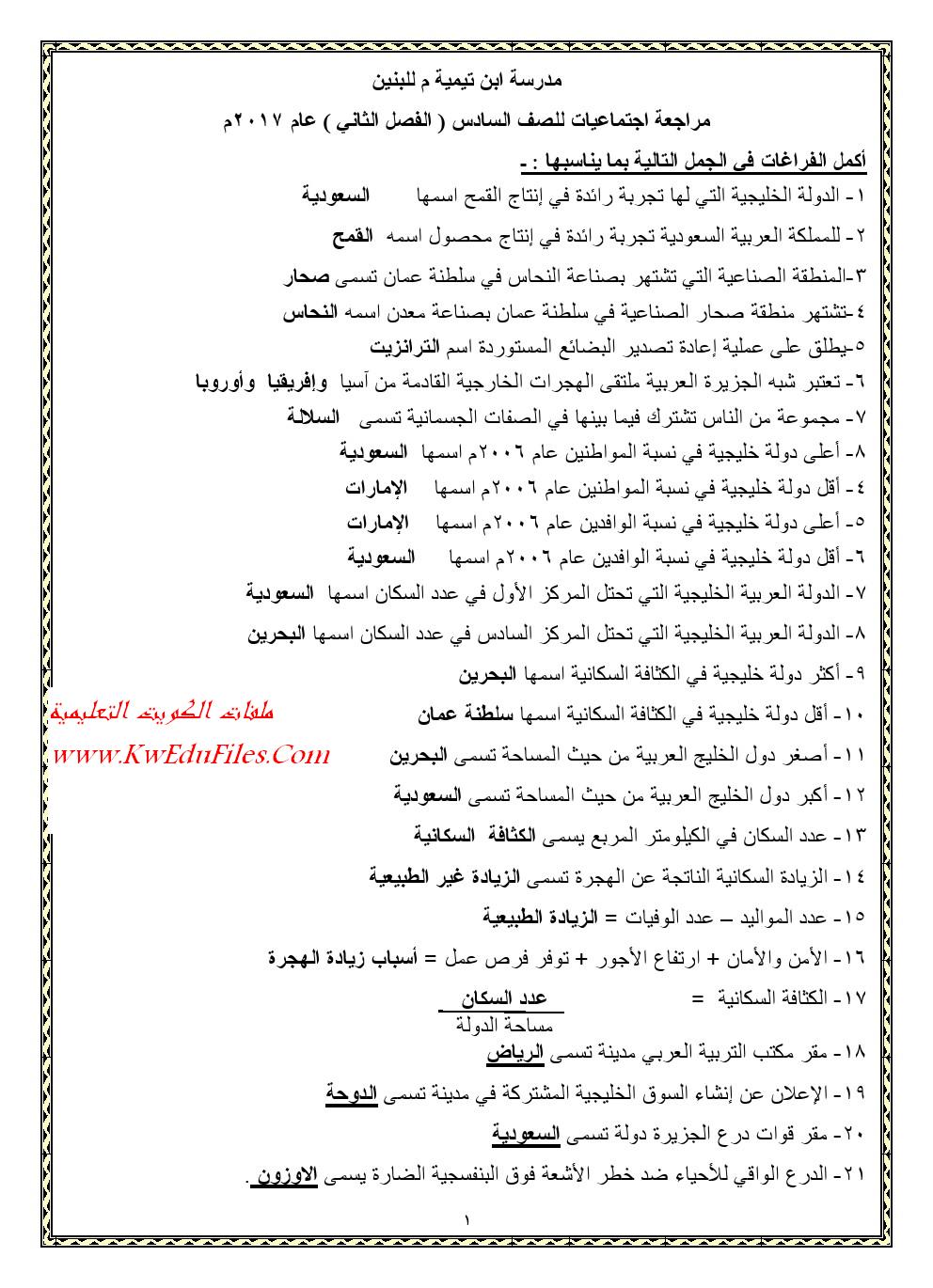 | مراجعة محلولة ومفيدةفي مادة الاجتماعيات - إعداد: مدرسة ابن تيمية م للبنين | ||