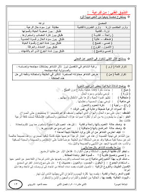 2. لغة عربية, الفصل الأول, 2025-2026, نموذج اختبار قصير أول من العشماوي