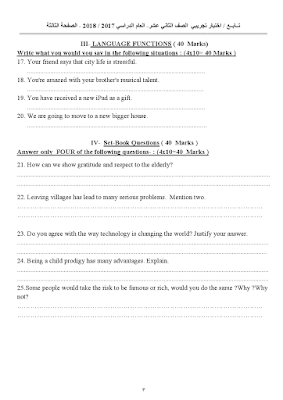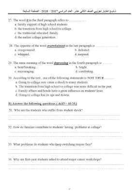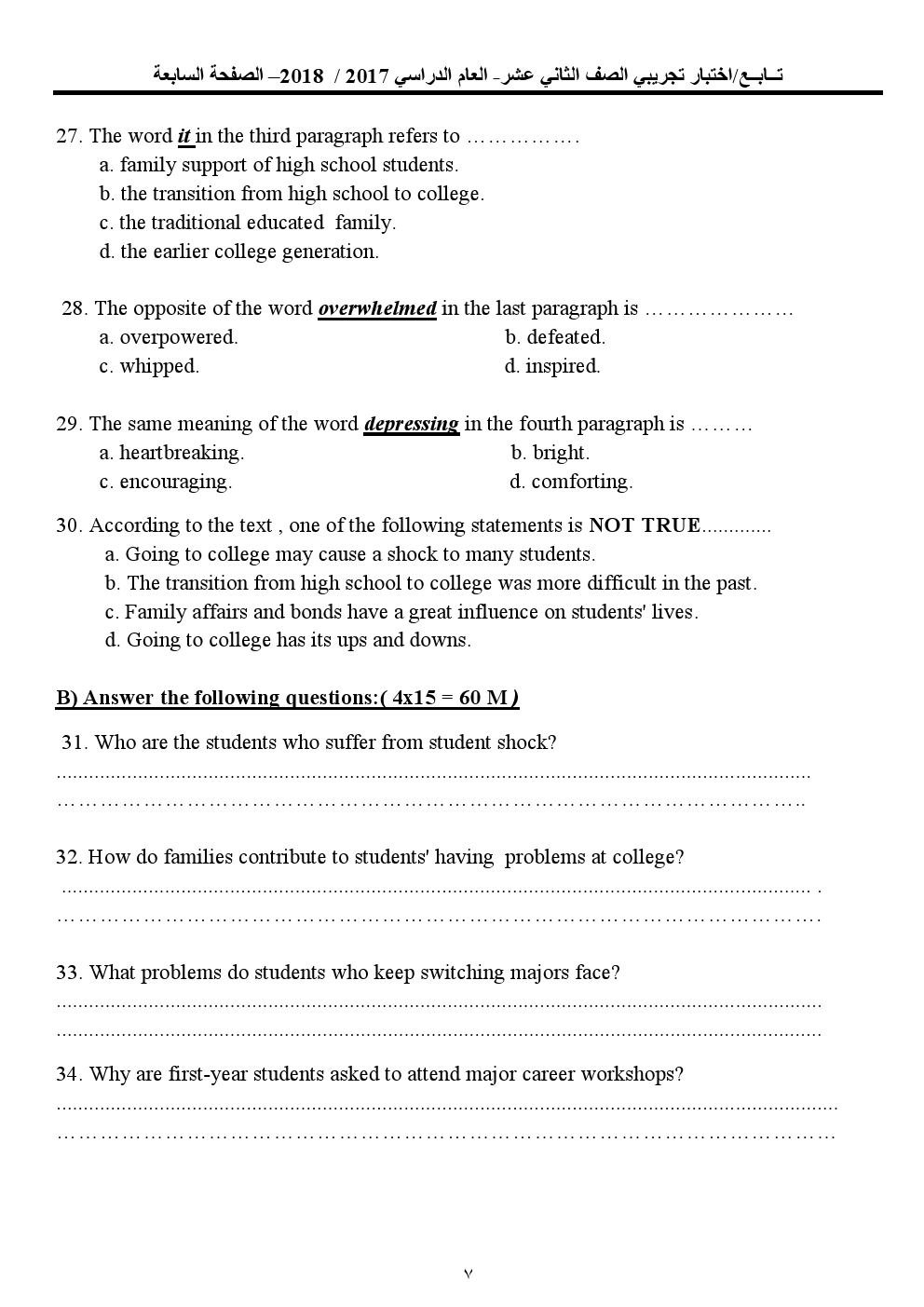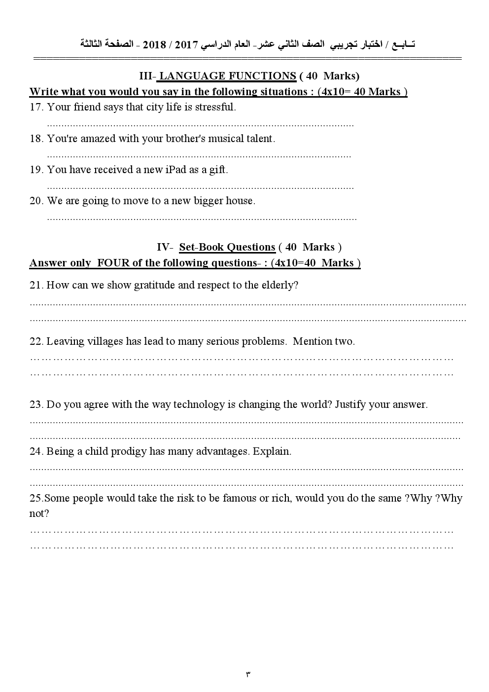 معلومات الملف: اختبار تجريبي للصف الثاني عشر العلمي والادبي في ثمان صفحات تتضمن مفردات وقواعد والتعبير والترجمة وغيرها | ||