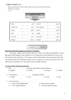 2. لغة عربية, الفصل الأول, 2025-2026, تحميل حل كتاب تقويم المدرسة