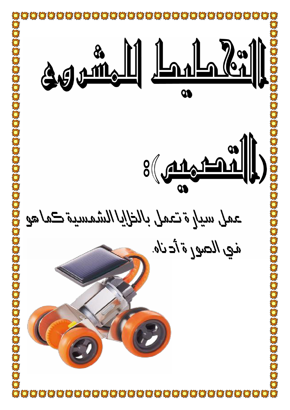 معلومات الملف: مشروع للصف السابع الطاقة الشمسية عبارة عن كيفية تصميم مشروع يهدف الى استغلال الطاقة الشمسية | ||