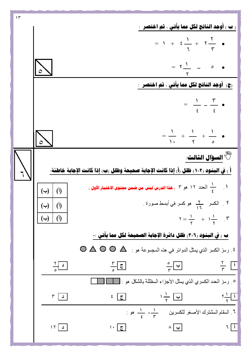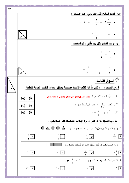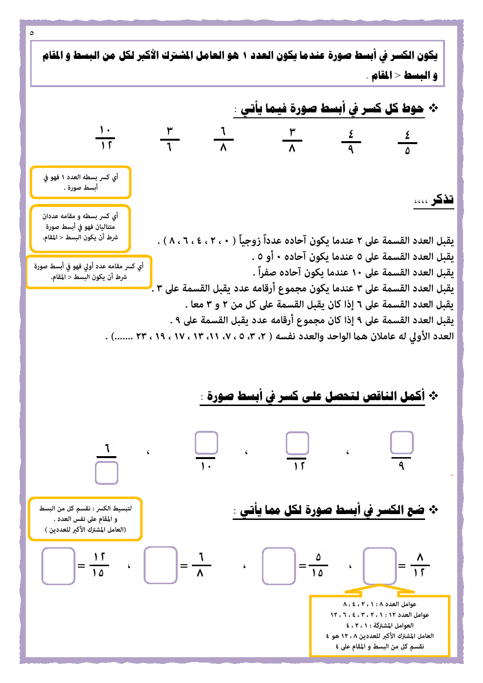تم إيجاد الملف: تدريبات للصف الخامس رياضيات